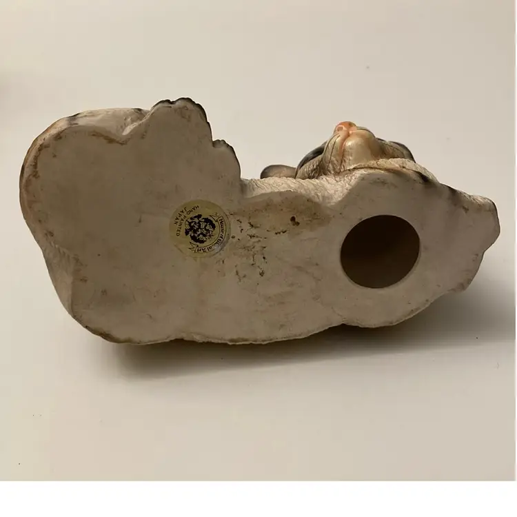 Harvey Knox Kingdom of Global Arts tabby cat. The tabby measures3 1/3” x 5 3/4” x 3 3/4” tall. In good overall condition. There are a few tiny spots were the paint is no loner tgere. This was hand painted in Japan.