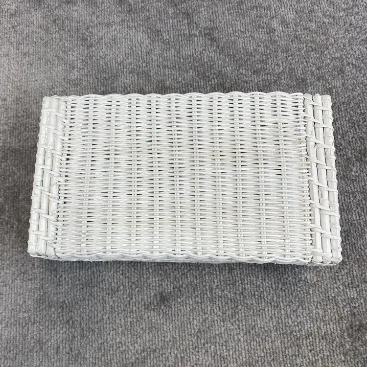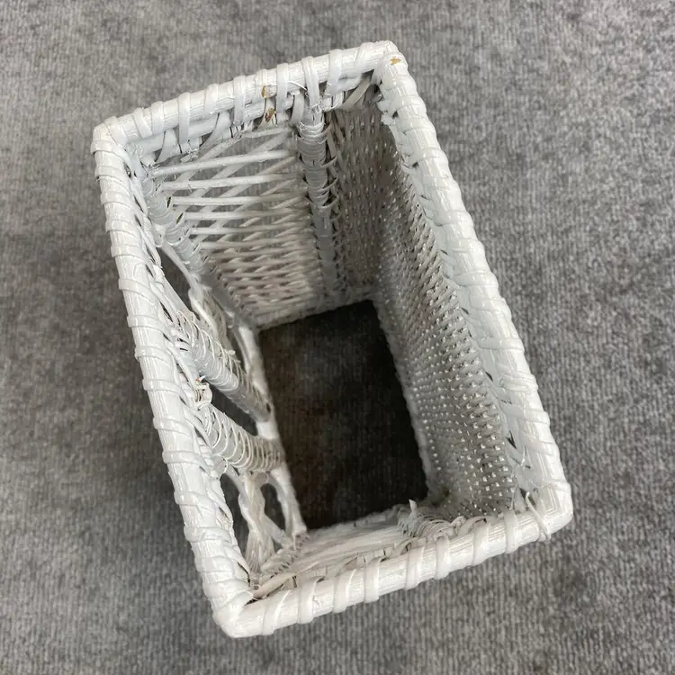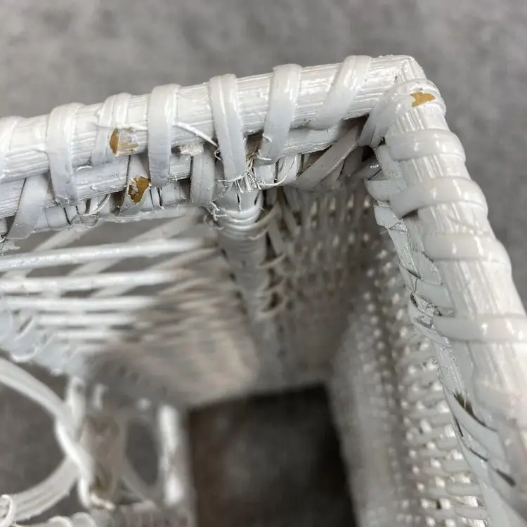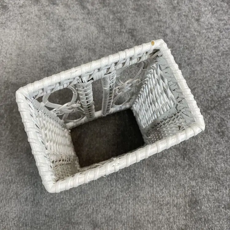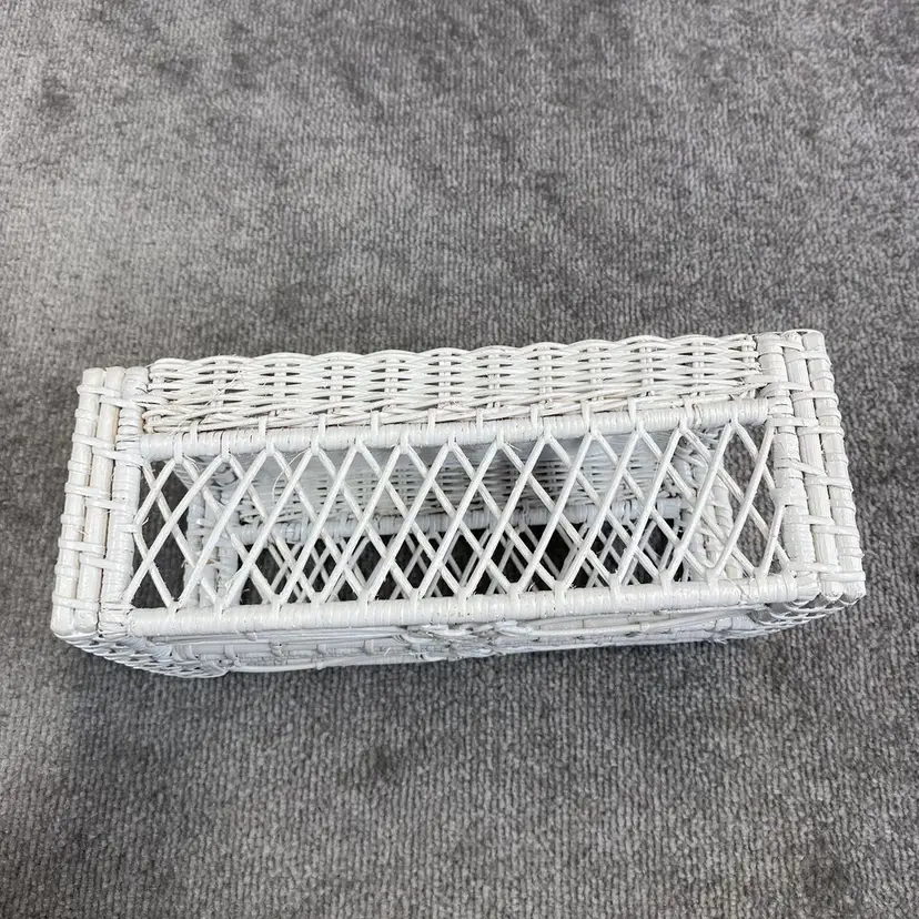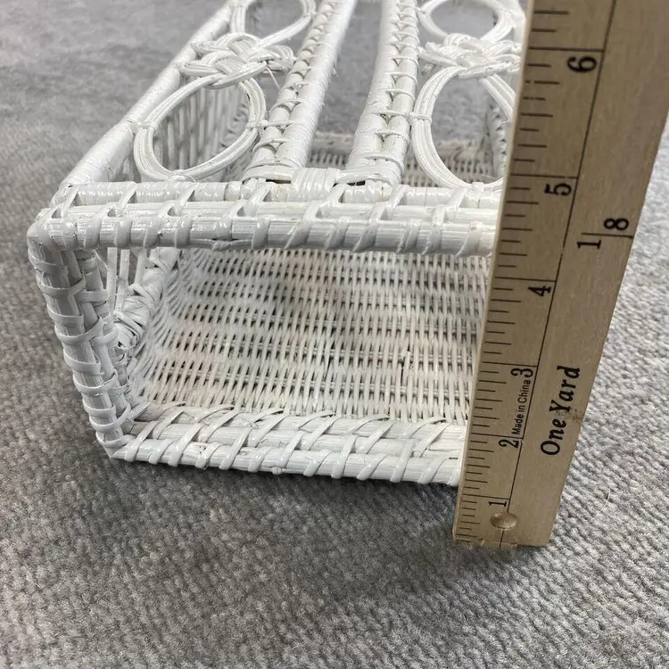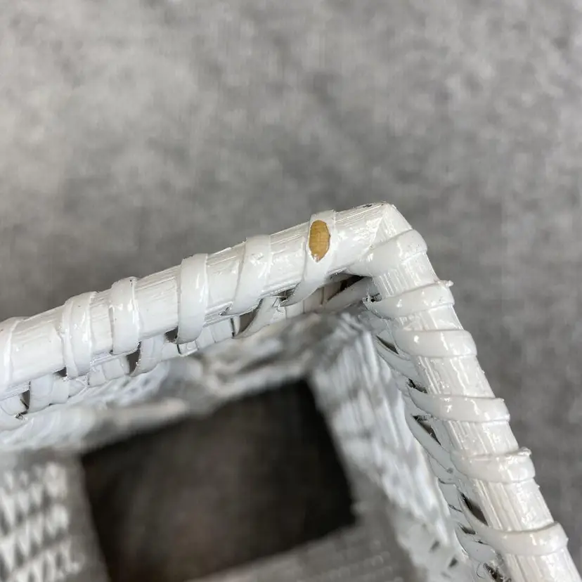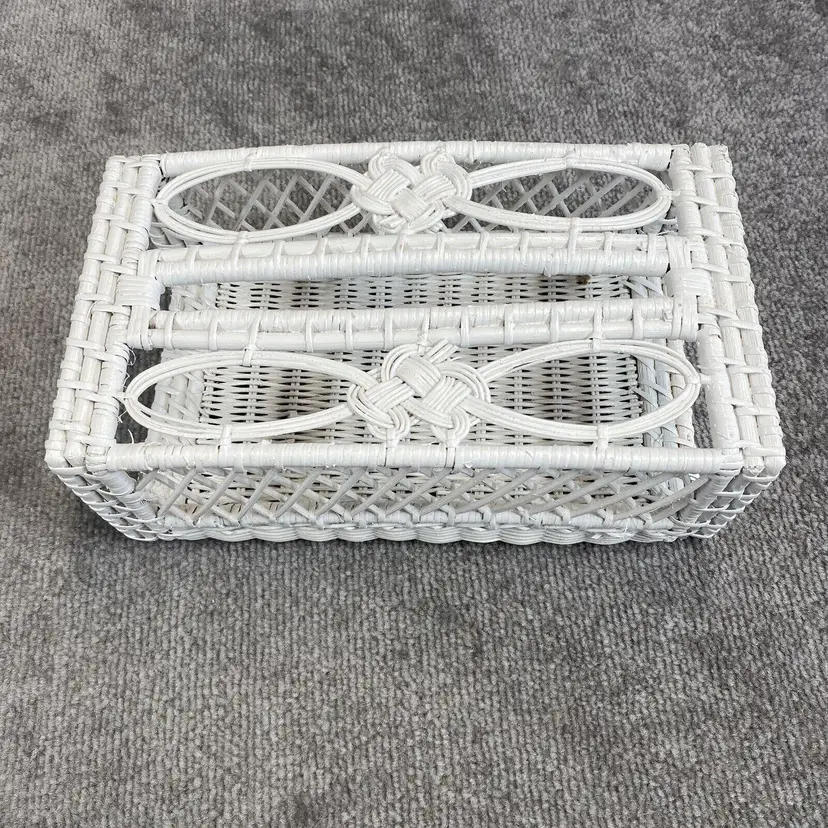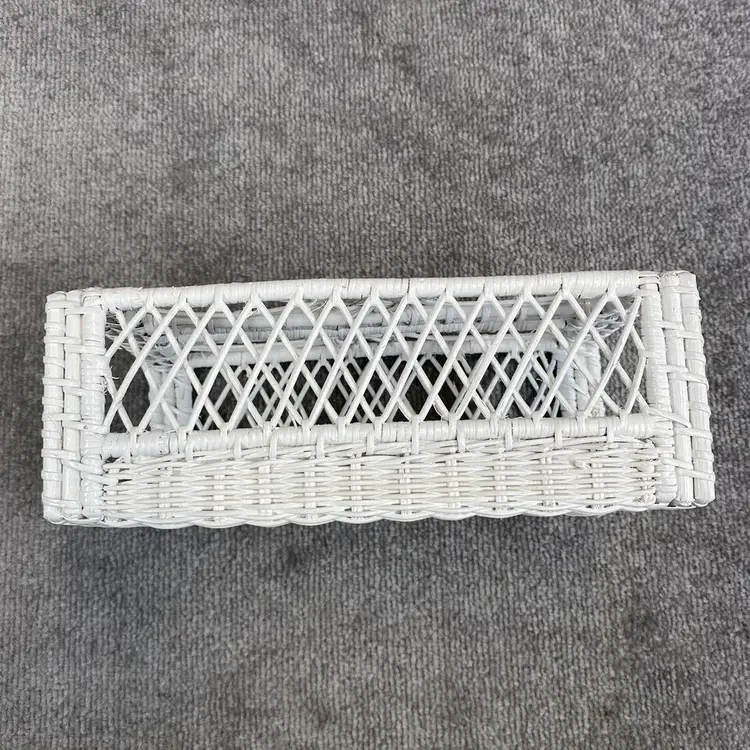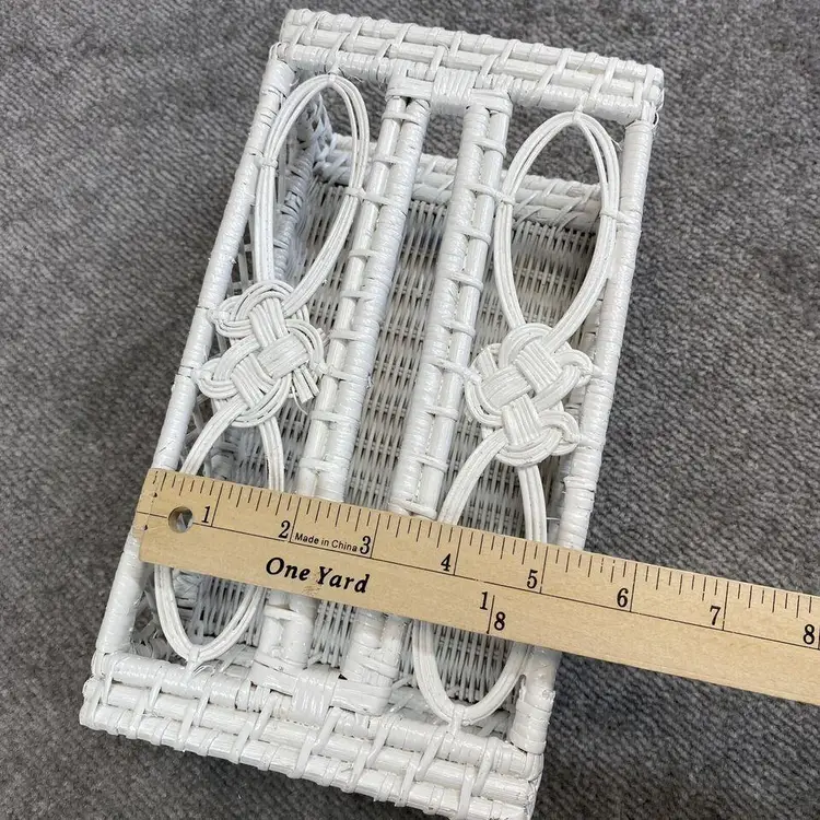 Preowned, has some paint loss around spots where tissue boxes are inserted, see photos for flaws and measurements.