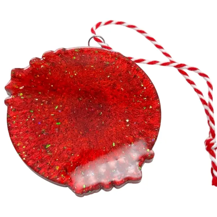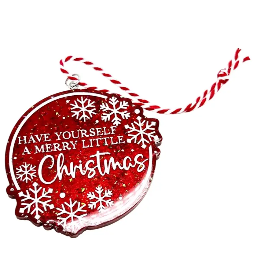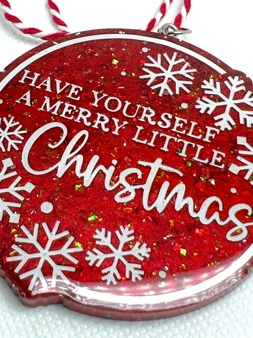 Handmade by me 🫶 “Have Yourself A Merry Little Christmas” Red Glitter Resin Ornament With Snowflakes ❄️ Comes with ribbon. 3-1/4” x 2-7/8” x 3/16”