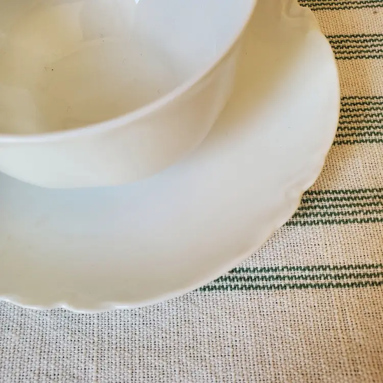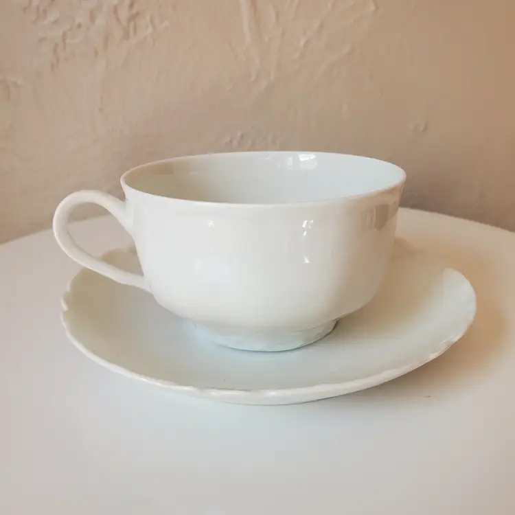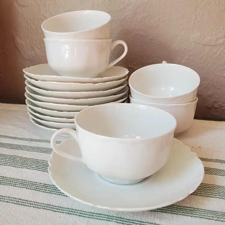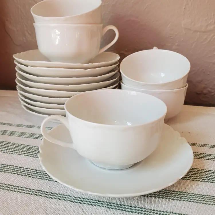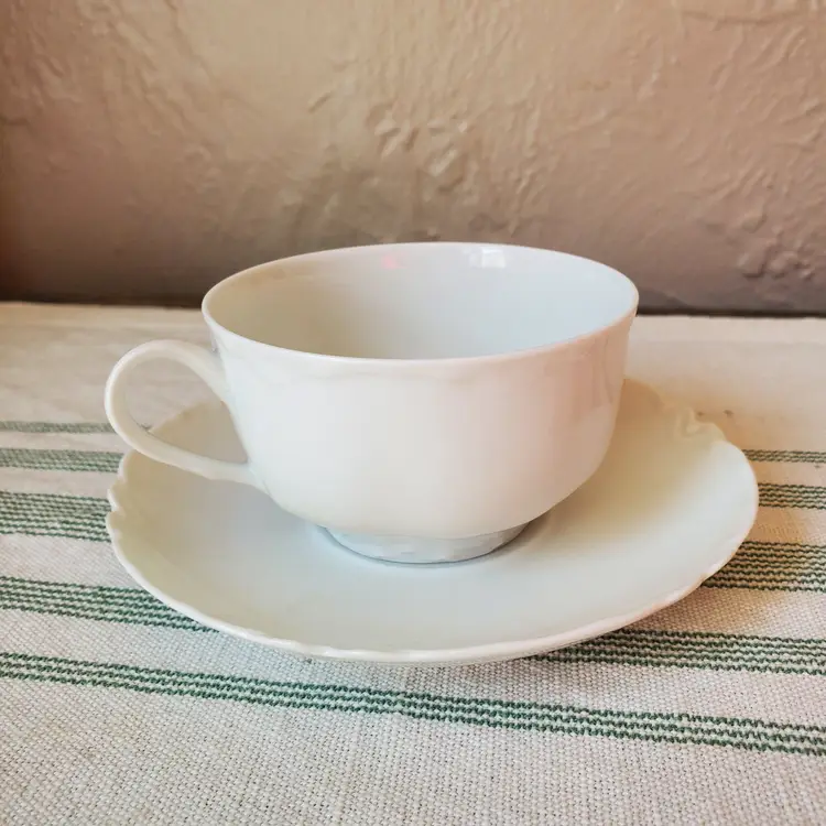 These are the most delicate, gorgeous porcelain. Haviland Limoges Ranson, produced from 1893-1931. Excellent condition. No chips, cracks, crazing, or breaks. The listing is for ONE cup and saucer, but there are multiple available and shipping will be adjusted, if you purchase more than one set. Cup is 3 3/8" diameter. 2" tall. Saucer 5 1/2" diameter.