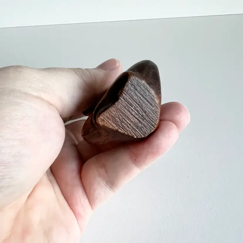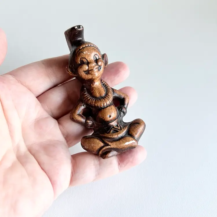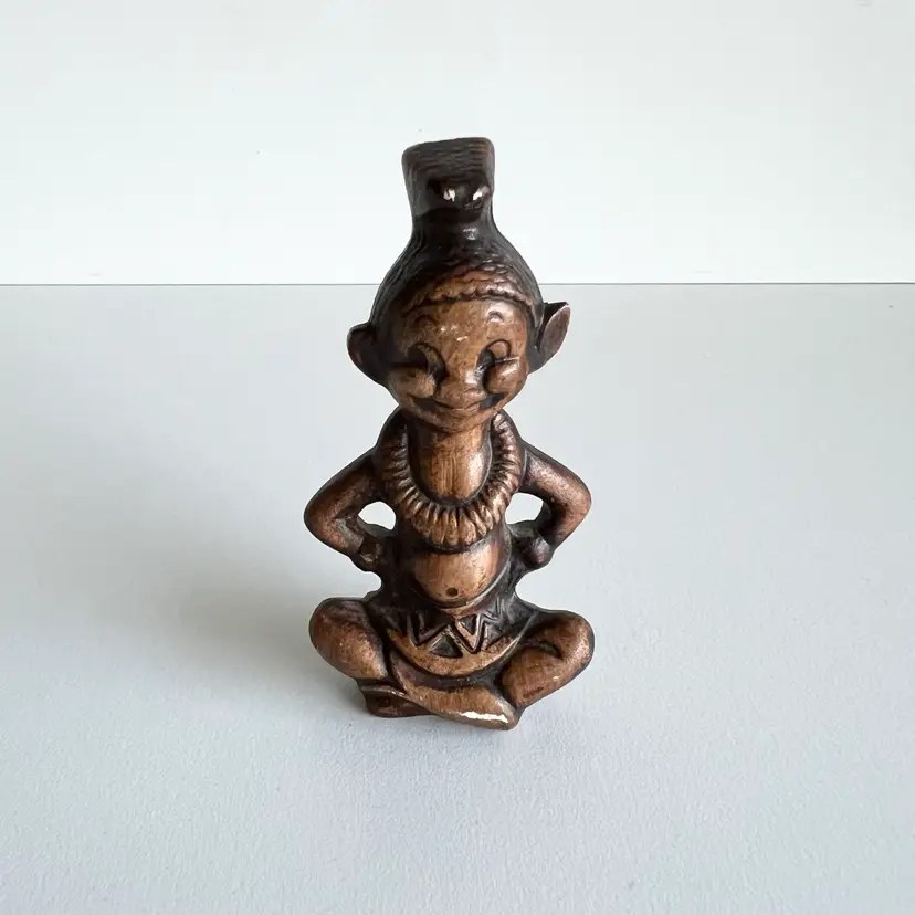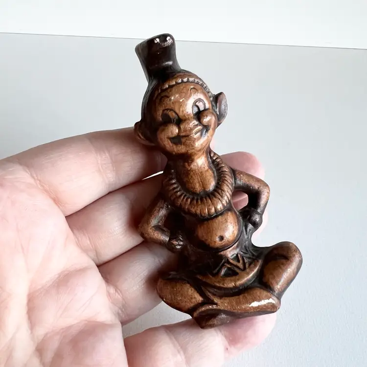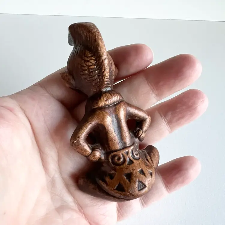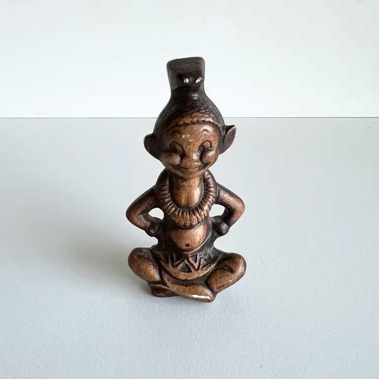The super cute little good luck figurine made by Treasure Craft is sure to bring you happiness in the new year. There are two small places of paint loss that could be easily touched up. But other than that in good shape for its age. 3 1/2 inches tall by 1 3/4” inches wide.