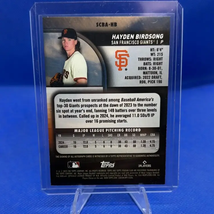 Hayden Birdsong 2025 Topps Stadium Club Auto San Francisco Giants