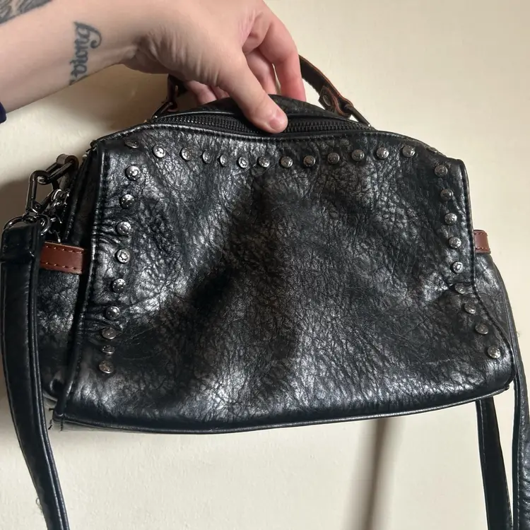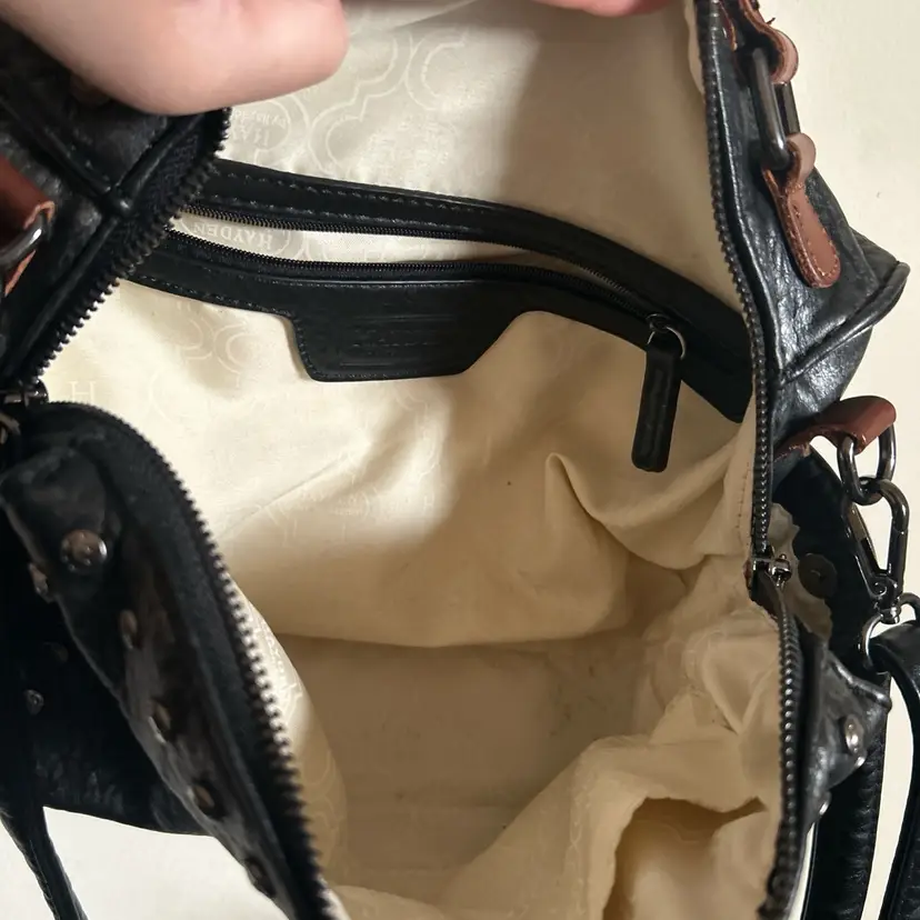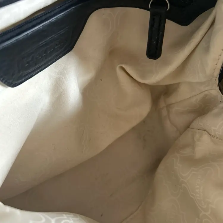 Great condition, just has some scratches on the metal piece on the front of the bag and the inside has a small stain you can see in the photos. That’s it