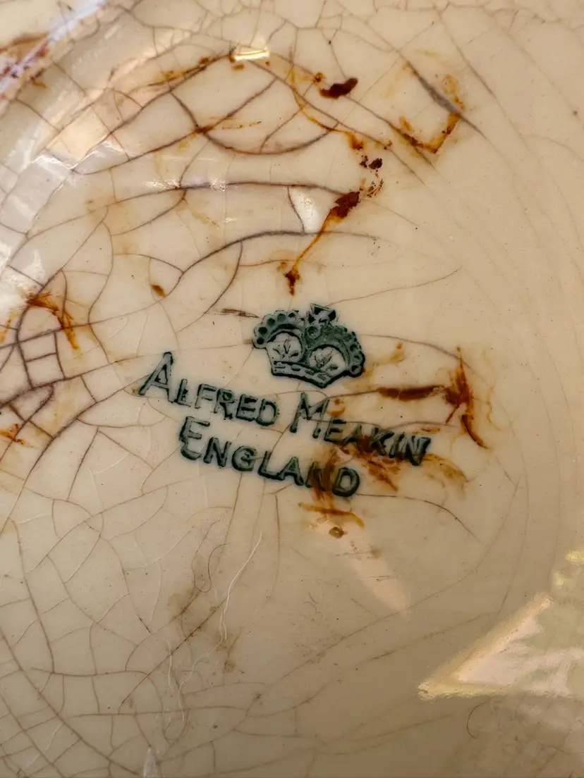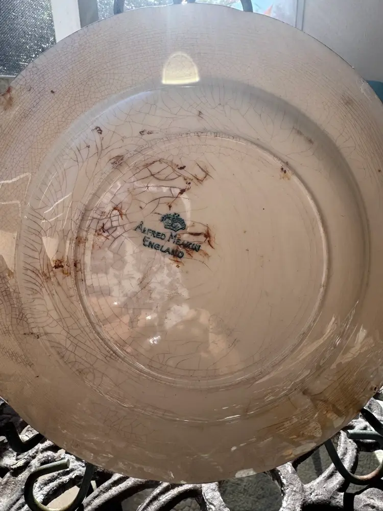 Made in England, 1940’s-50’s. 10” in diameter. Lots of grazings and stains. This piece has truly been loved.