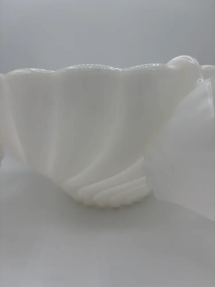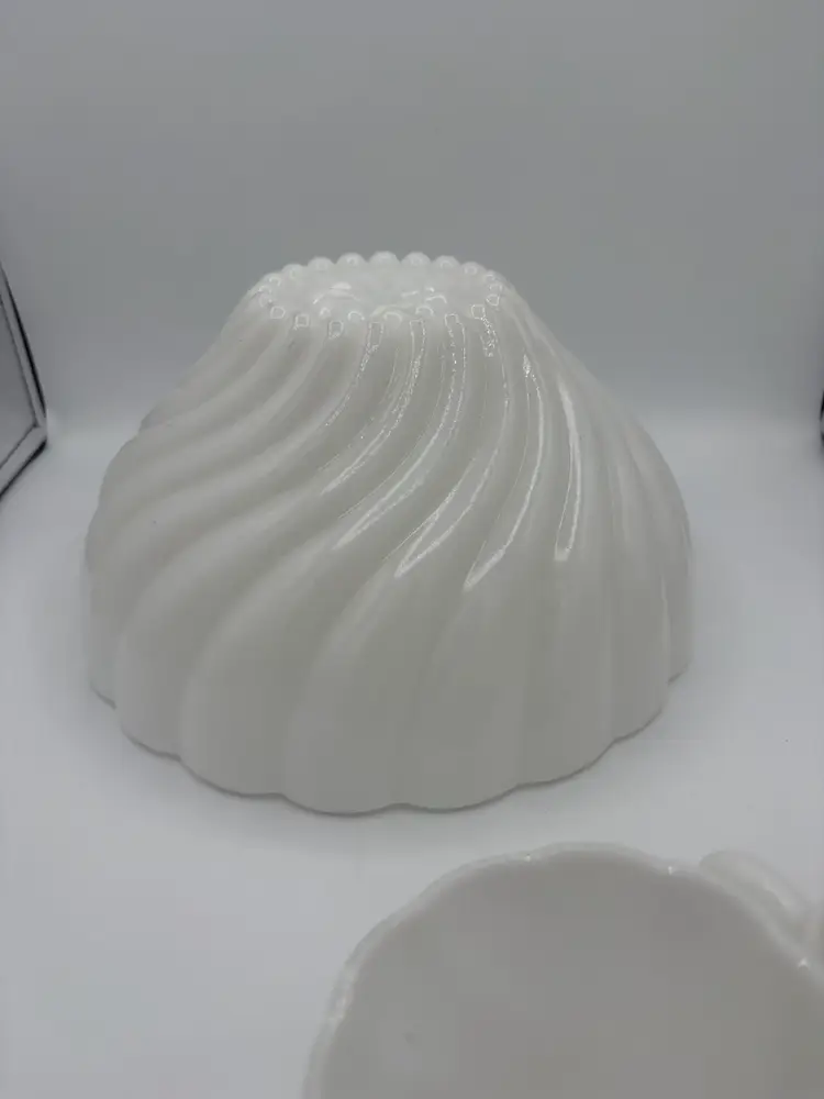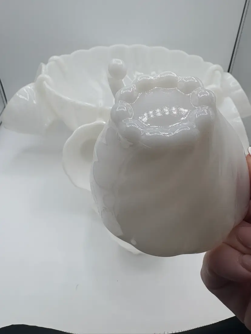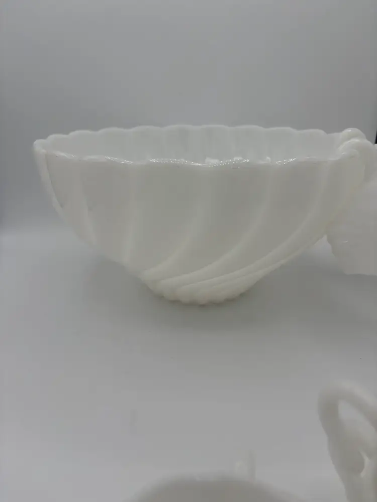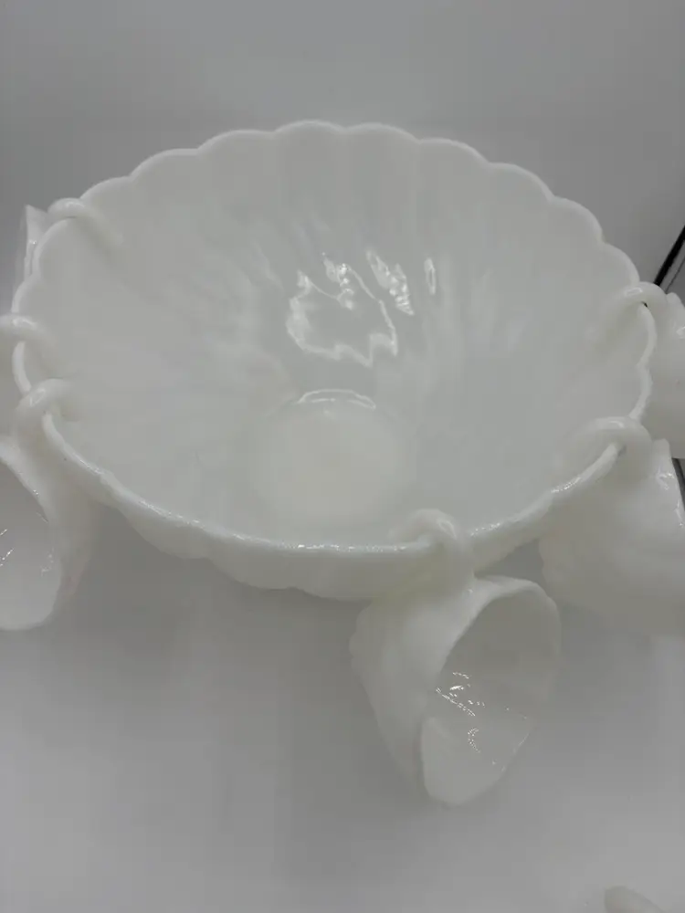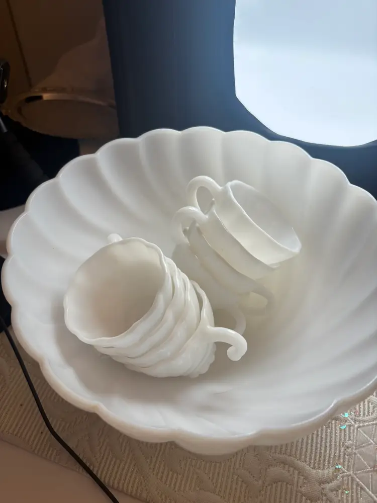 Hazel Atlas Alpine White Swirled Milk Glass Punch Set W/eight Cups