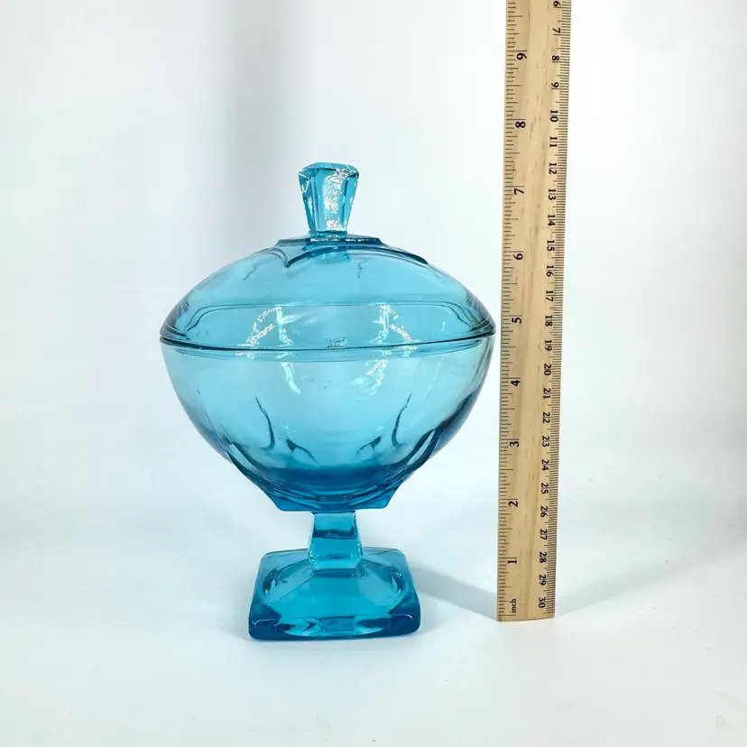Height is approximately 8” Does have chips can be seen in the photos. One chip is in the lid the other is on the base. Is not signed or marked