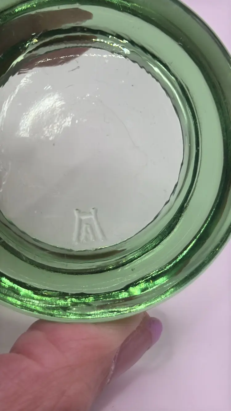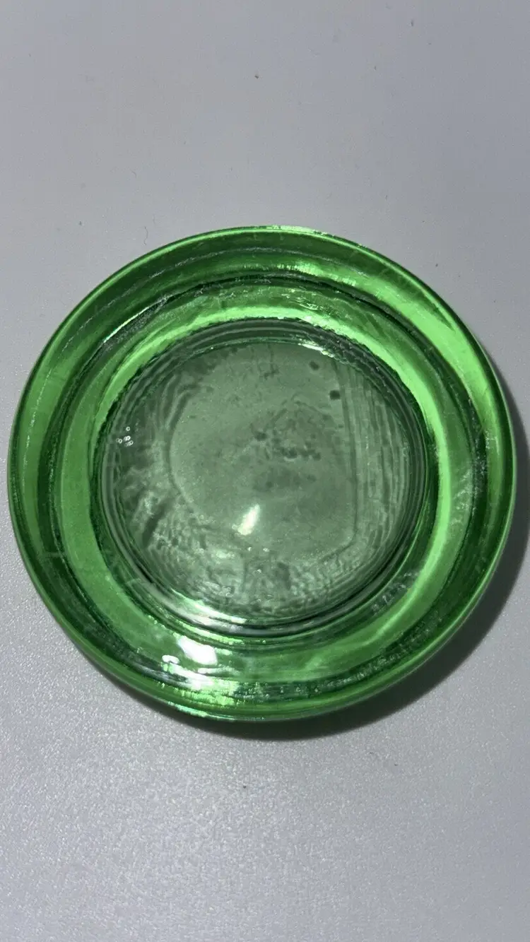 Elegant green glass. Perfect for decor. Vintage HAZEL ATLAS Depression Uranium Green Glass Furniture Caster Could be used as a small trinket dish 2.25” diameter Excellent condition with no breaks or chips