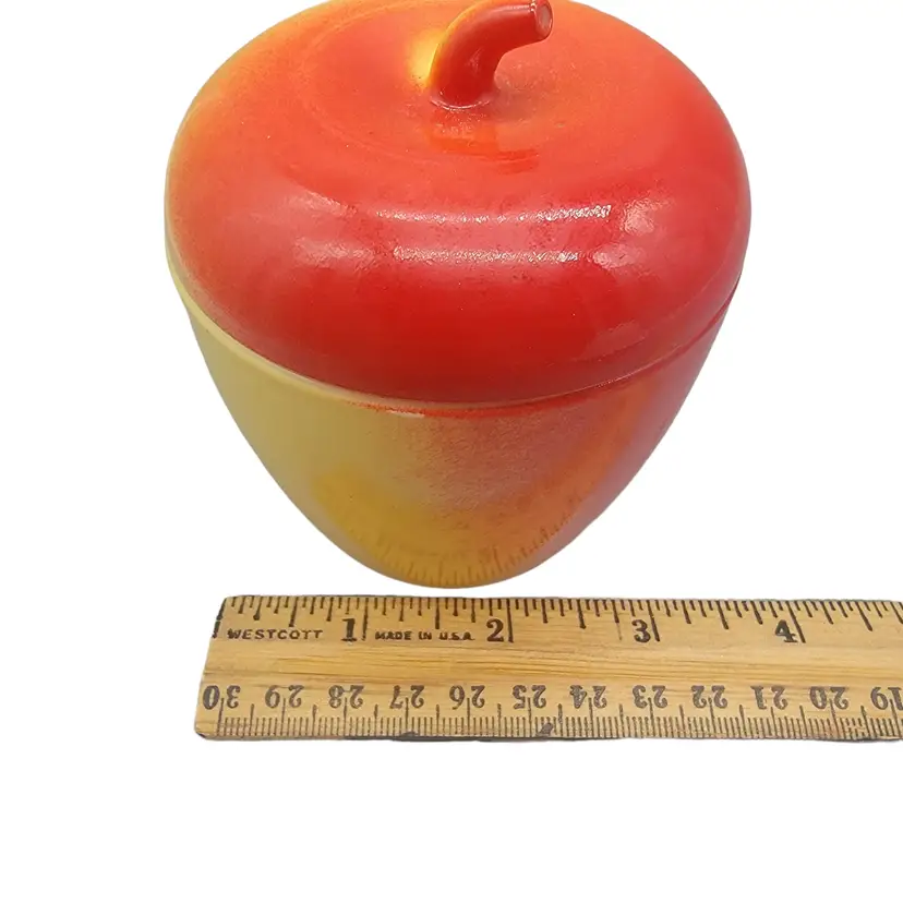 Cute milk glass Hazel Atlas apple sugar/jam/jelly jar. Condition: pre-owned; no chips, cracks, crazing. Paint is in excellent condition. Measurements approximately: 3.75" tall; 3.5" in diameter SKU 202406 Fragile-C