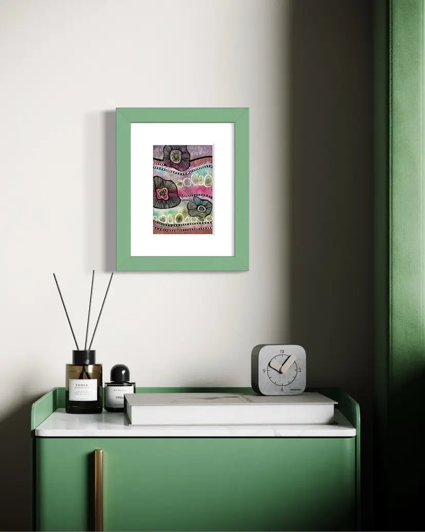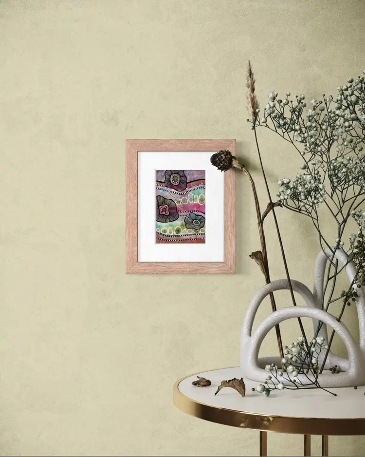 Abstract artist intuitively creating vibrant, whimsical mixed media pieces inspired by love of nature. 📍Alpena, MI