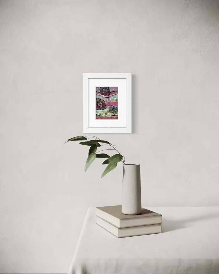 • 6”x4” original watercolor and mixed media painting on 100% cotton watercolor paper. • Sealed and protected with two layers of archival varnish. • Ships flat. • Frames and matting not included; for reference only. • All original paintings are signed, dated and come with a signed Certificate of Authenticity.