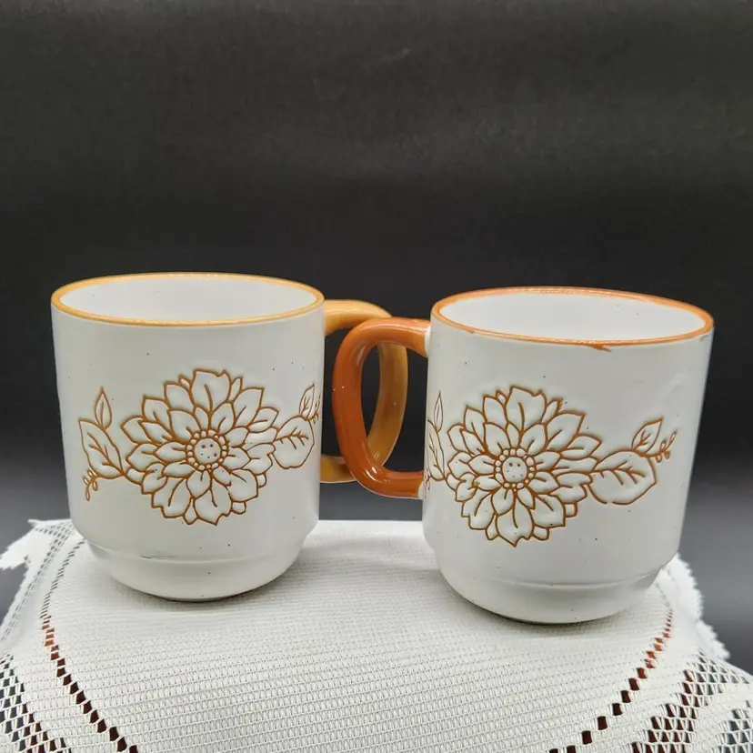 4 in H 3.75 in Depth 3.5 in Diameter 3.5 in W 5.25 in L No visible cracks or chips One cup is darker than the other