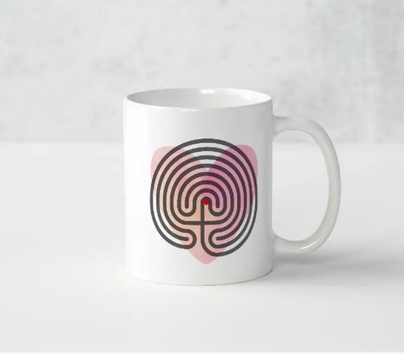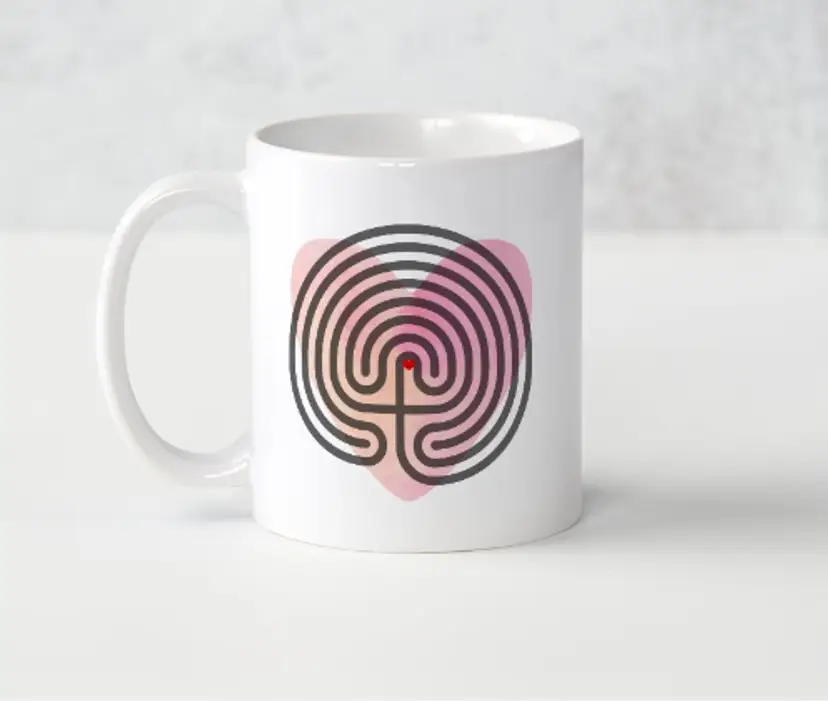The Heart Center 7 Circuit Classic/Cretan Labyrinth Mug. The Labyrinth Design is on both sides of the Mug. 11oz Ceramic Mug Dishwasher & Microwave Safe