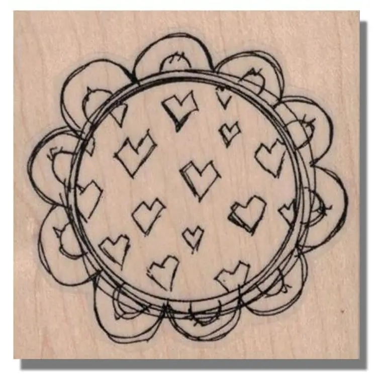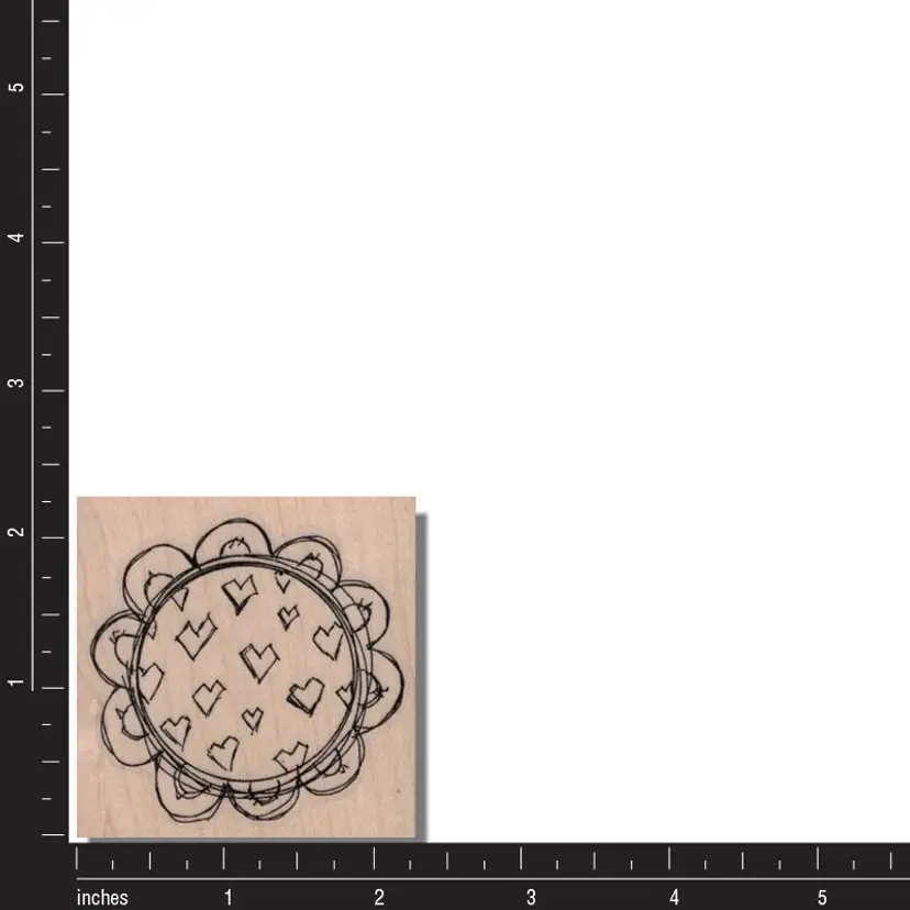 Heart Pattern Circle Rubber Stamp Size: 3 x 4 inches Wood Mounted - Red Rubber Handmade New • Perfect for card making, gift tags, scrapbooking, junk journals, crafting and art projects. • First purchase on District? Use this code for $5 off a $10 min purchase. ALOHAG34