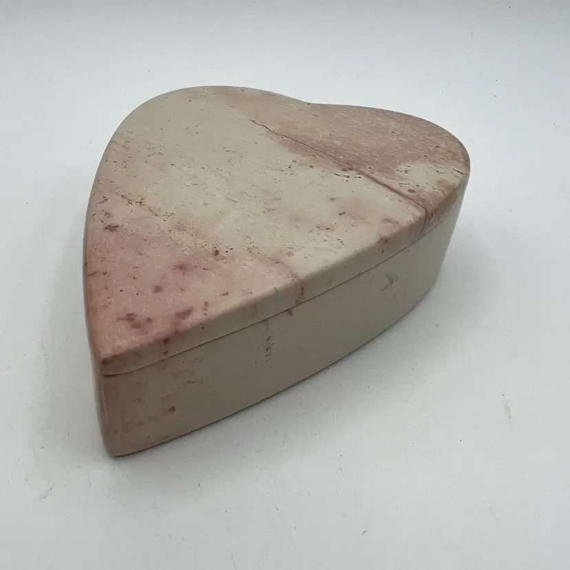 Heart Raspberry Alabaster Pink Trinket Jewelry Box Hand Carved Lid 5" Valentine