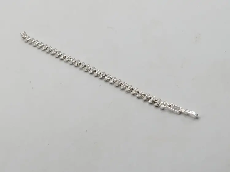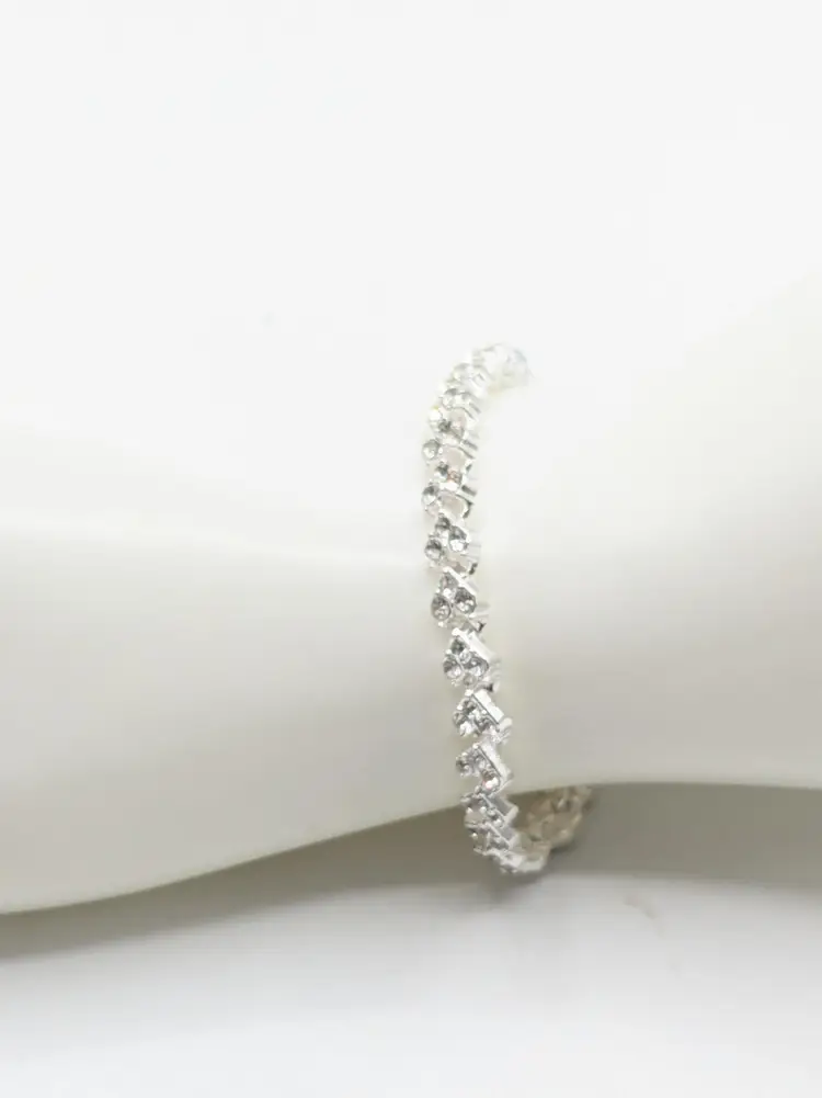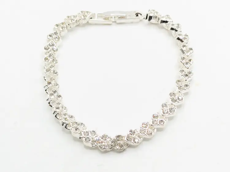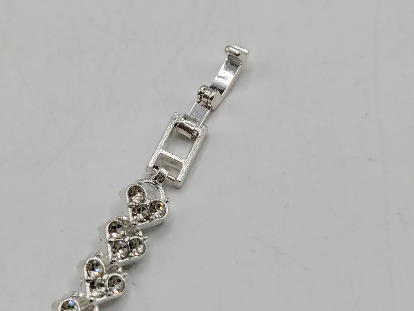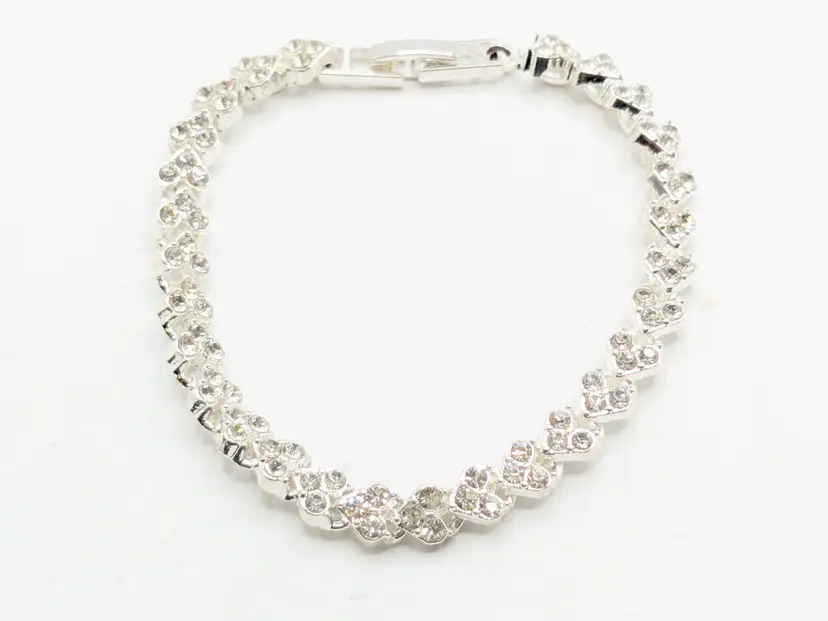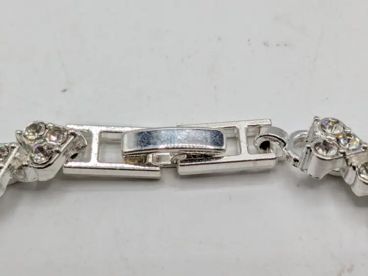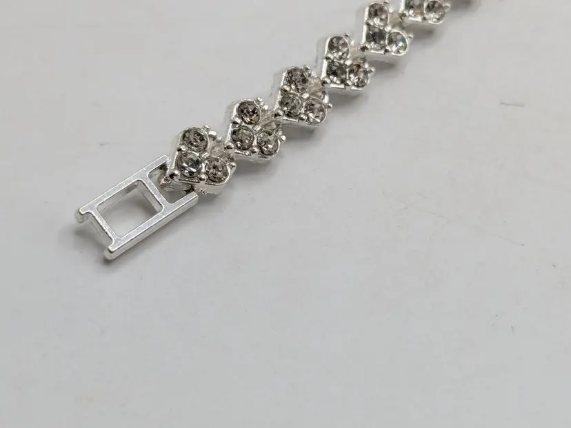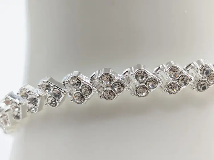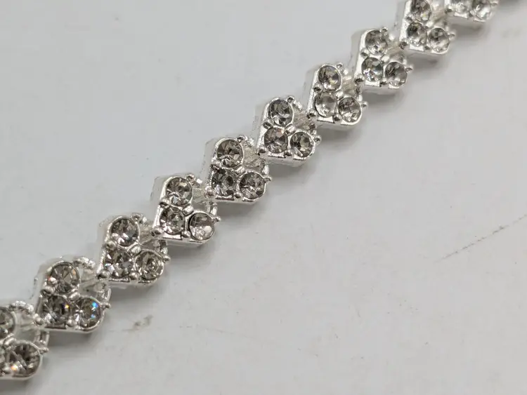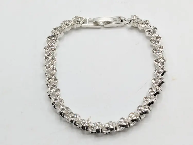Good condition. Sparkly and shiny silver tone and rhinestones. Size 6 3/4". (EN1)