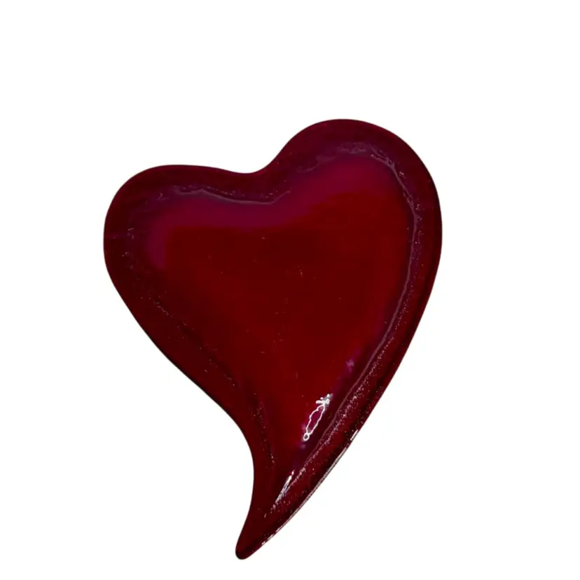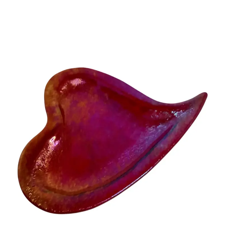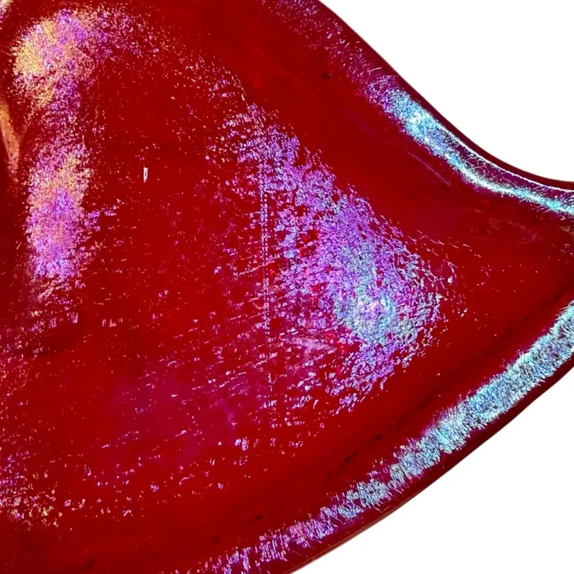 Stunning modern red dichroic heart shaped art glass trinket/candy dish.