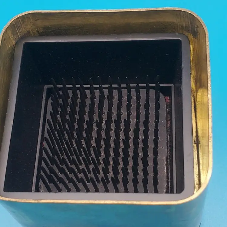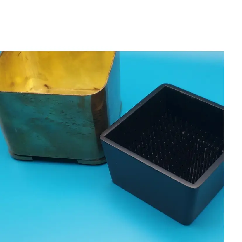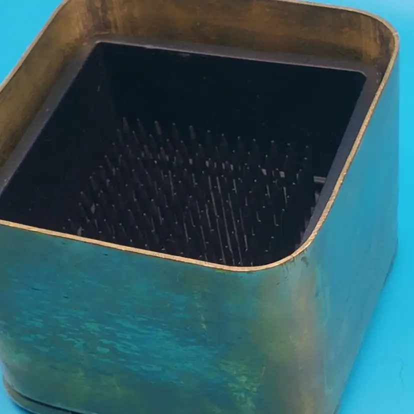 2.5×2.5 flower frog in its own brass case. Very unique Pre-owned piece. Heavy and durable.