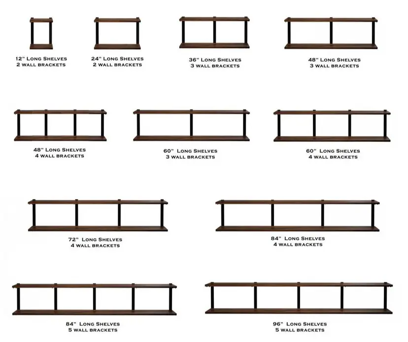 RECOMMENDED BRACKET SPACING Standard spacing: Every 16"–32" Heavy-duty shelving (books, records, décor): 24" apart or less More brackets = higher weight capacity