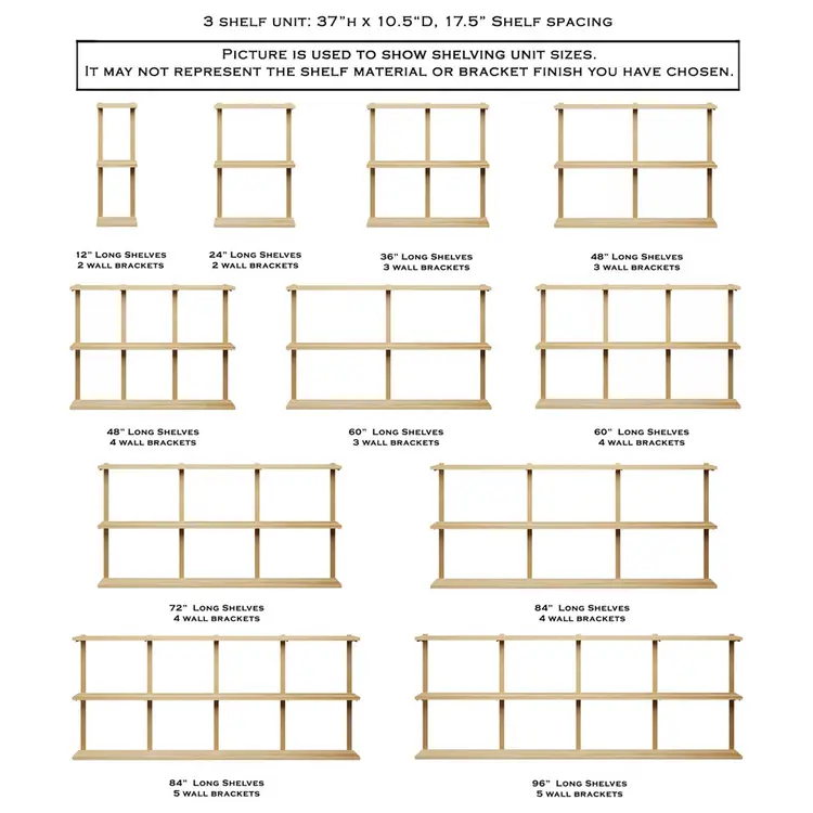 RECOMMENDED BRACKET SPACING Standard spacing: Every 16"–32" Heavy-duty shelving (books, records, décor): 24" apart or less More brackets = higher weight capacity