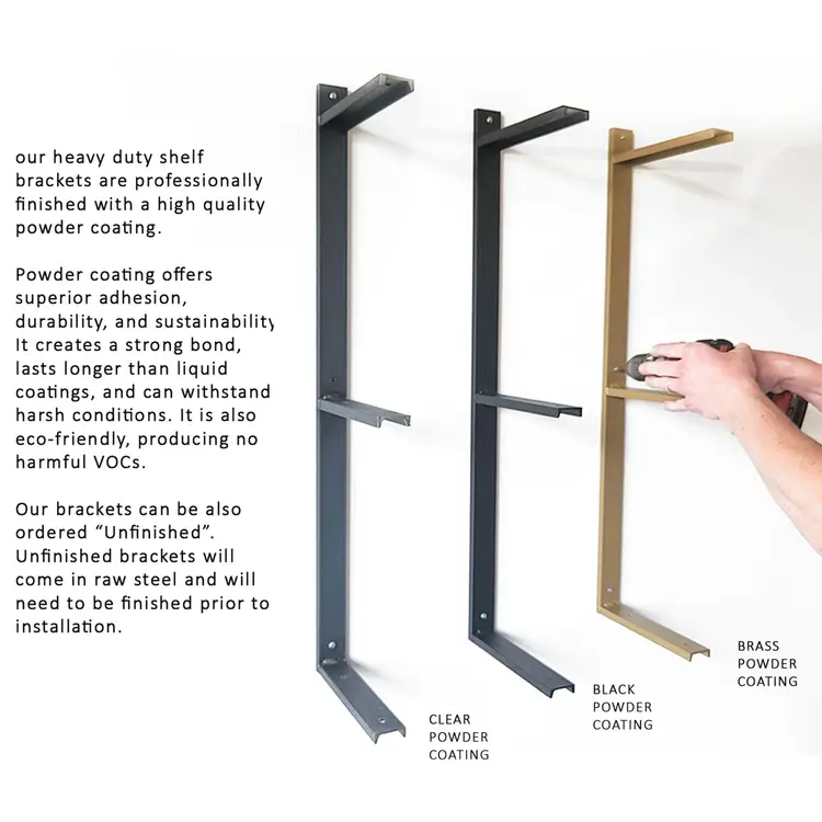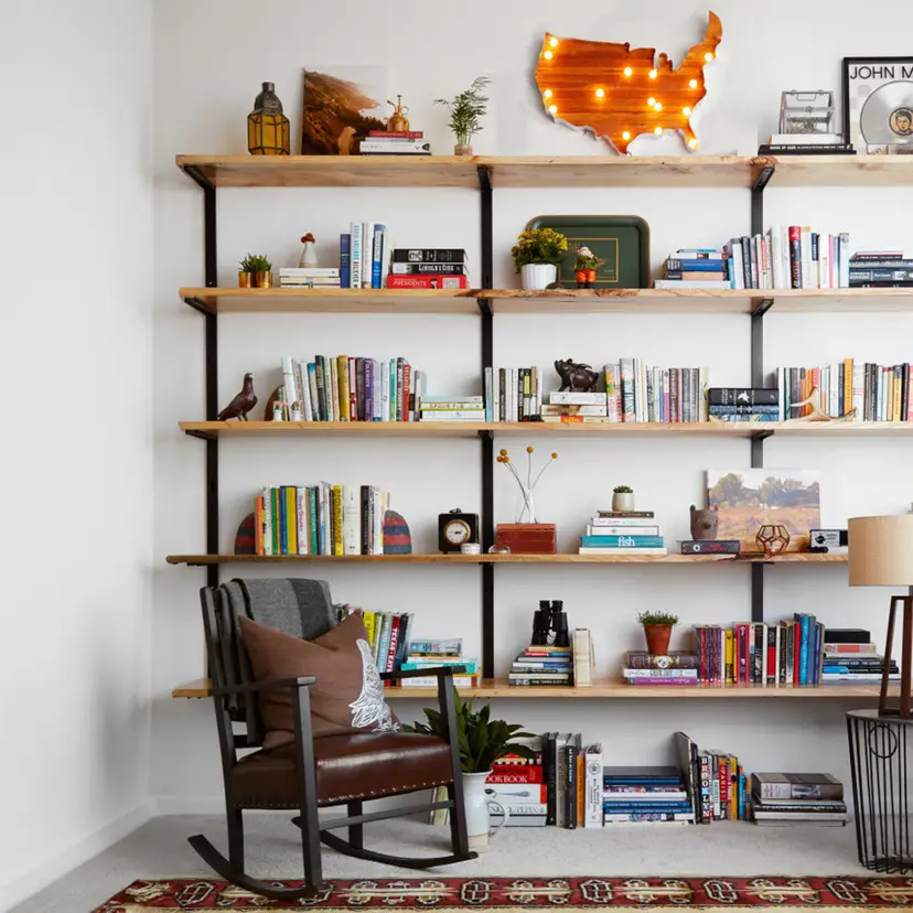 Our modern industrial shelf brackets are designed to deliver serious strength with a clean, architectural look. Hand-fabricated from solid American steel channel and finished with a durable powder coating, they’re built to support everything from everyday storage to fully loaded bookshelves.