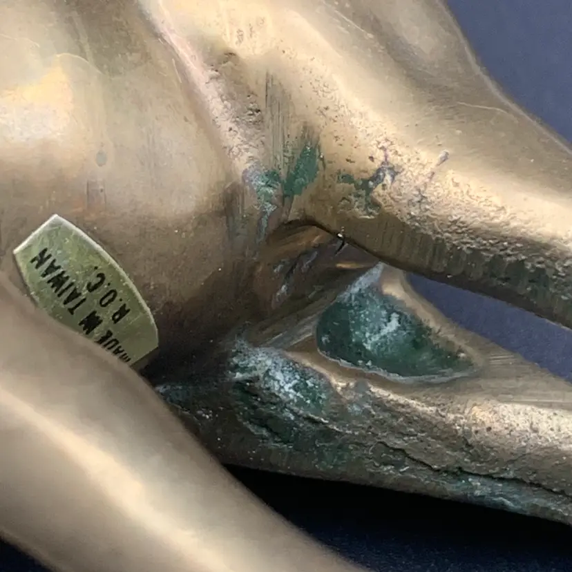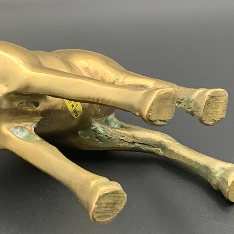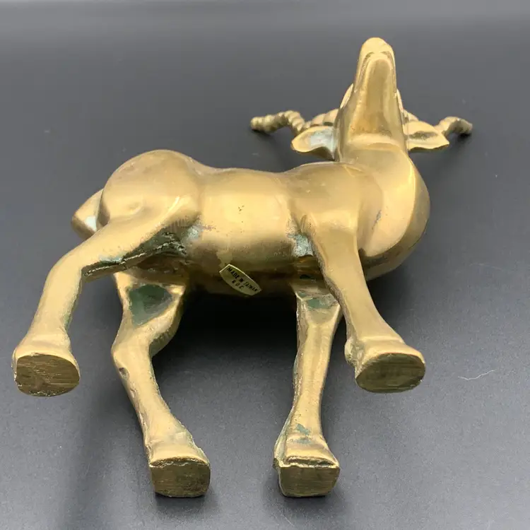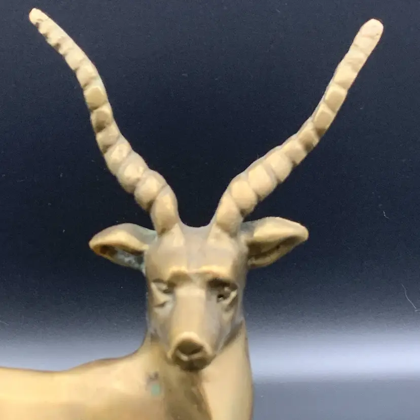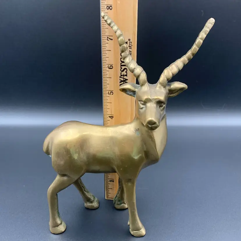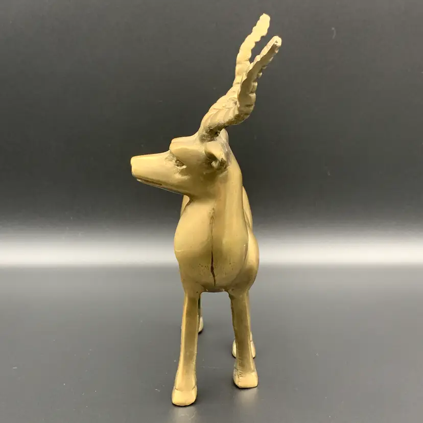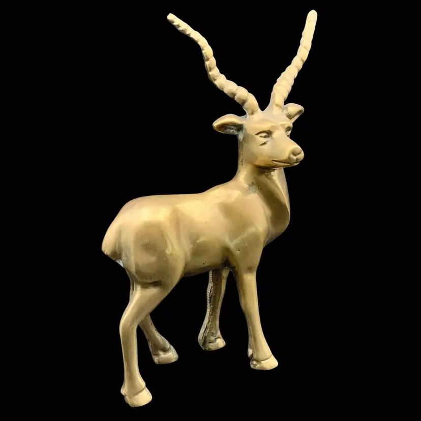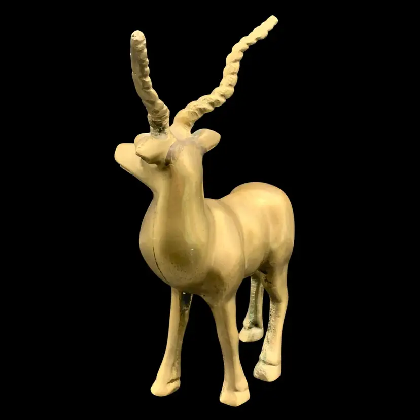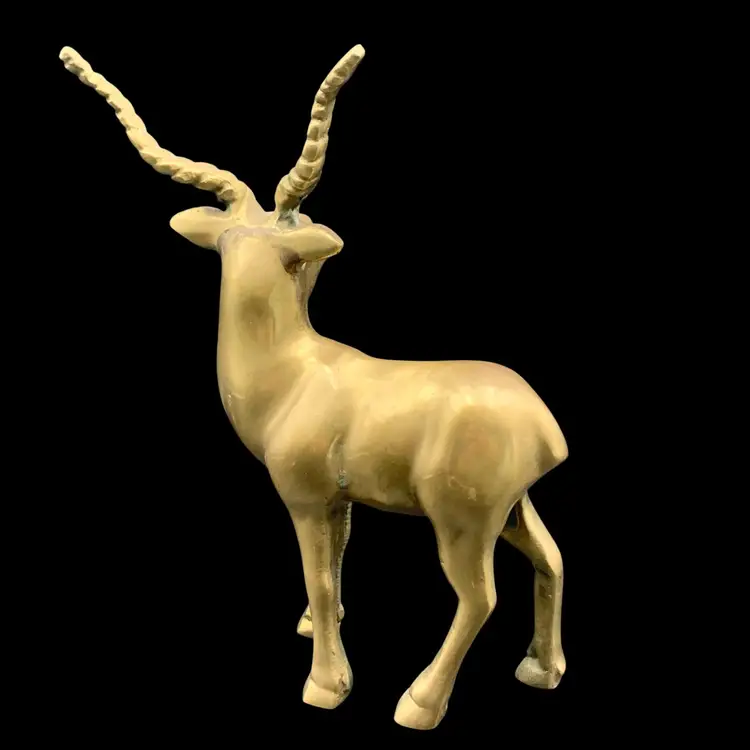 Heavy solid brass antelope or gazelle. Uncleaned to preserve patina, some verdigris present, most on the underside.