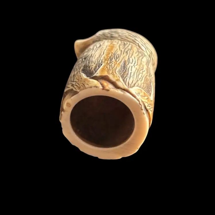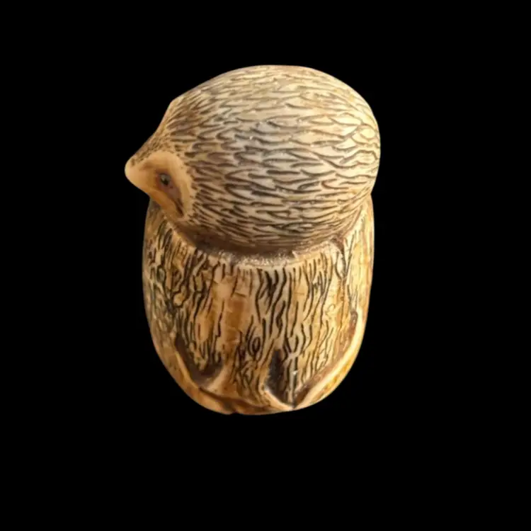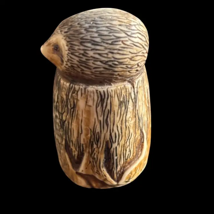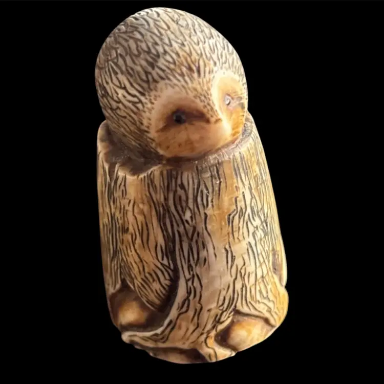The most adorable hedgehog thimble. Appears to be made out carved bone. No damage. 2.5x1.75x2.25โ