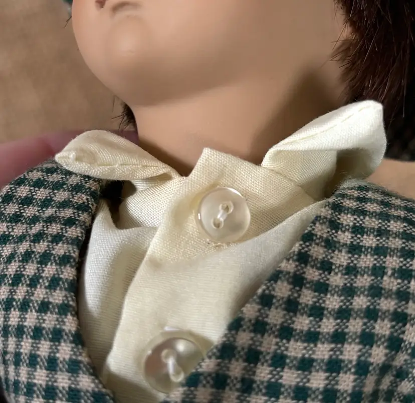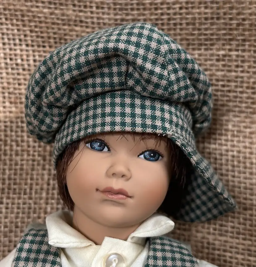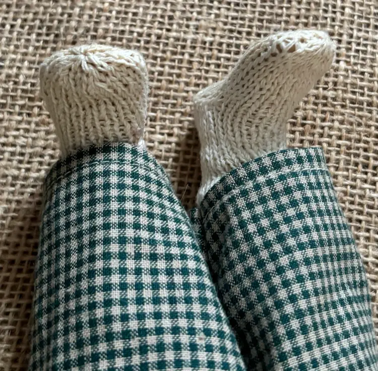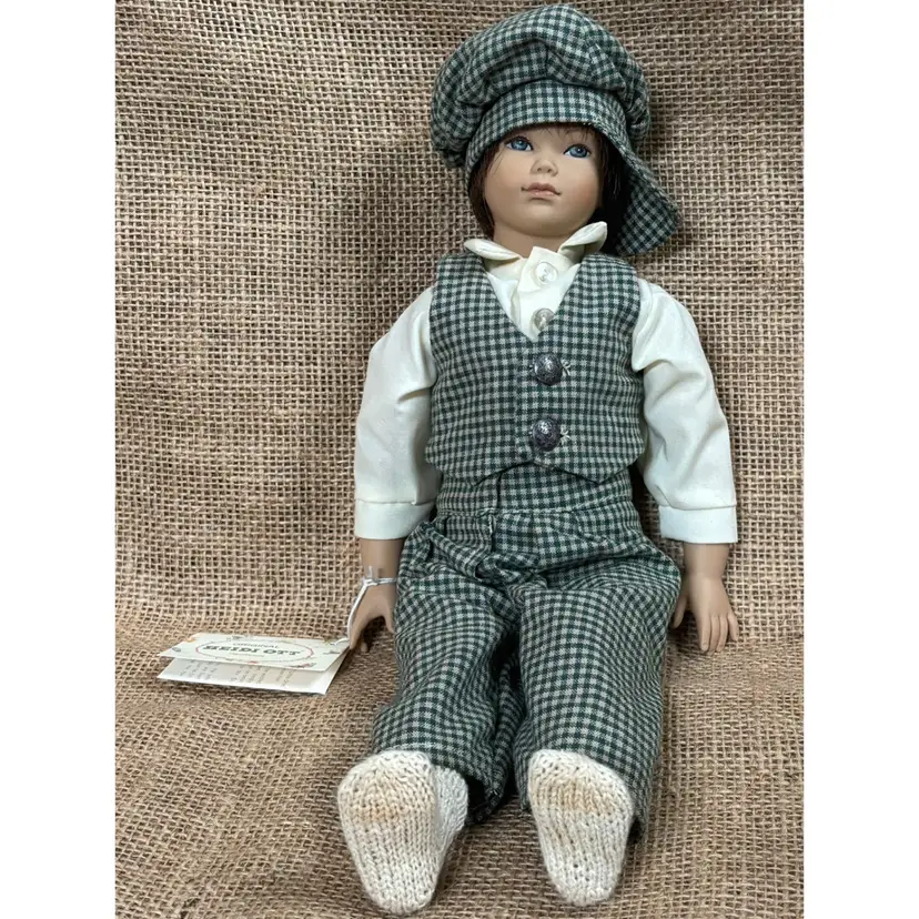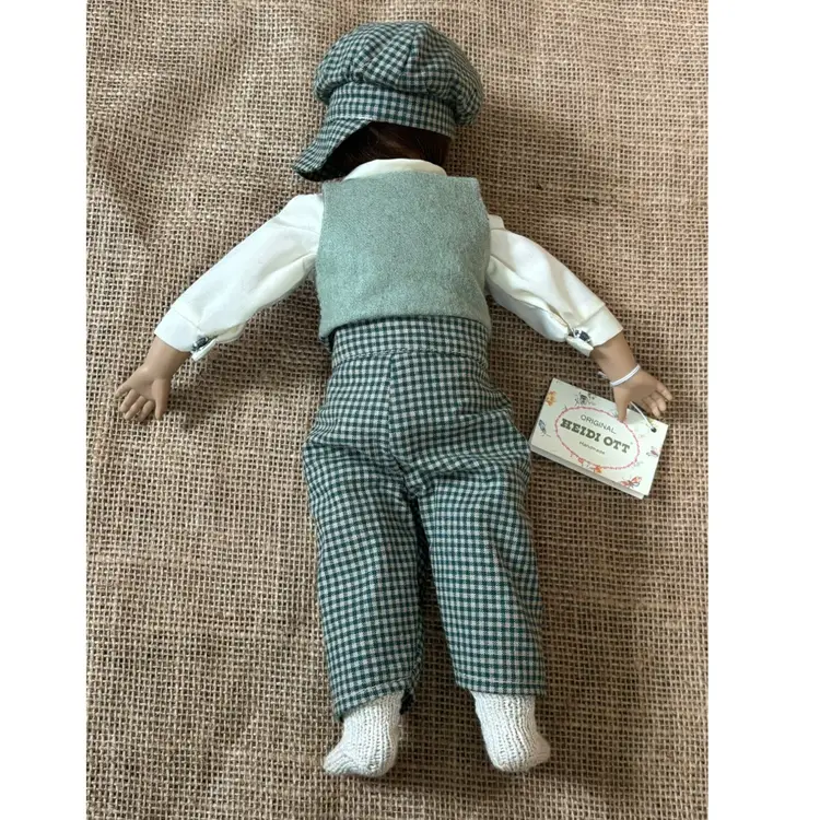 Condition: No shoes. Significantly staining on socks. Light yellowing on top of shirt. Minor fuzz on vest. Minor creasing on cardboard hang tag. Hat tends to droop over eyes.