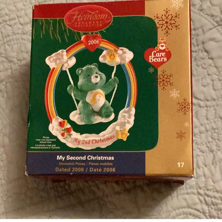 My second Christmas ornament Care Bears in the box by heirloom ornament collection dated 2006 my second Christmas Carebear ornament
