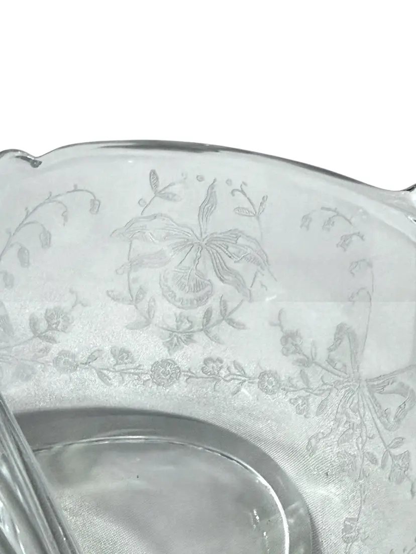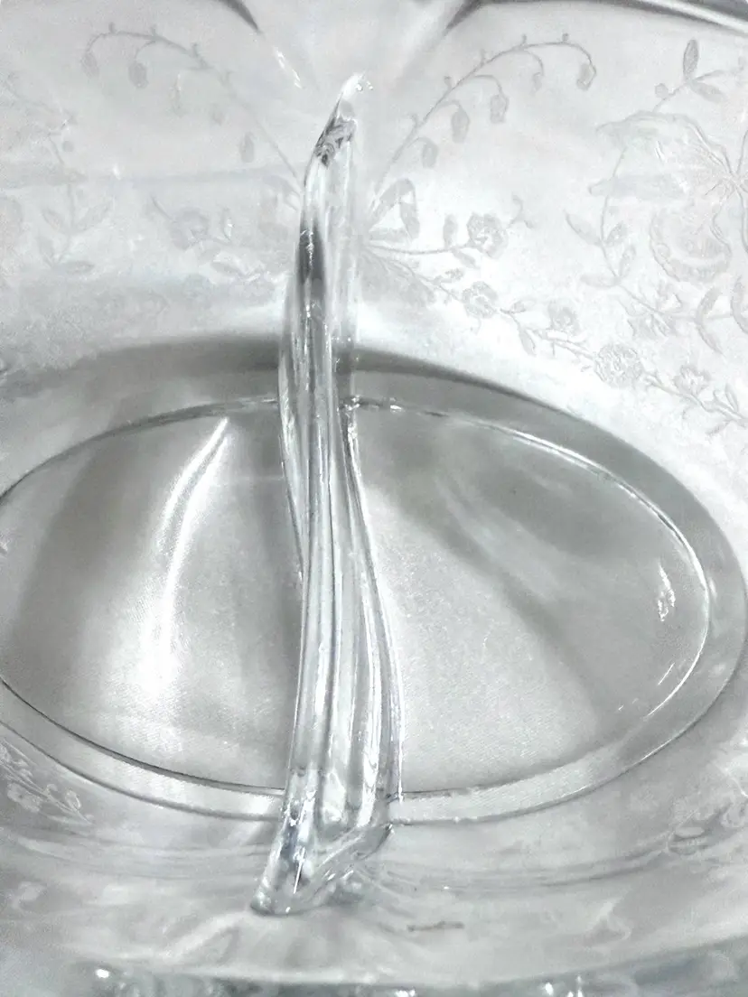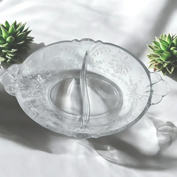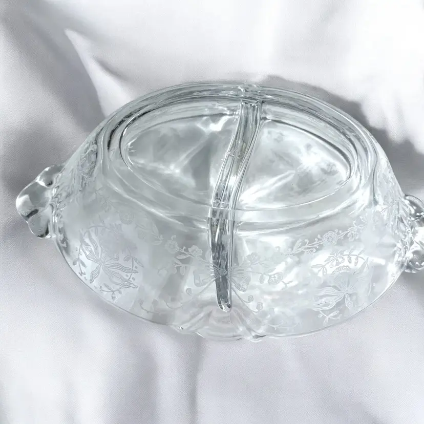 Heisey Orchid, etched glass dish, Heisey divided bowl, vintage relish dish, elegant glassware, depression glass, Orchid pattern Heisey.