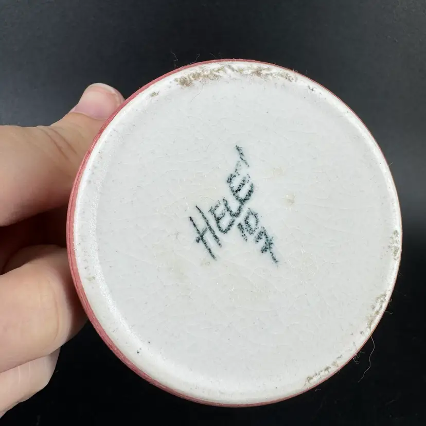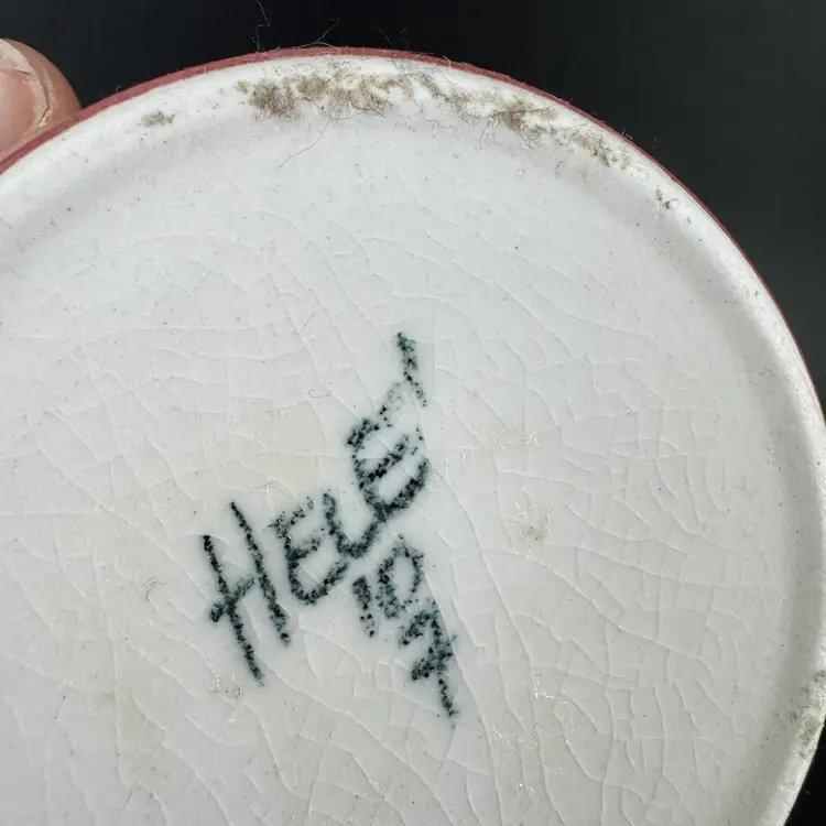 Height is approximately 3” Does have some chips can be seen in photos Is sighed “Hele”