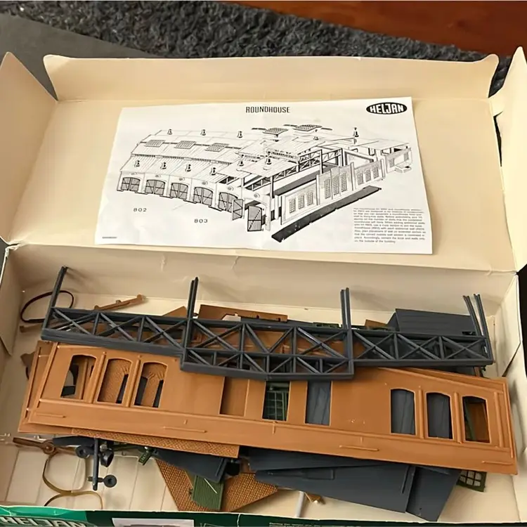 This is a Heljan 802 HO Scale 3-Stall Roundhouse Building Kit.
