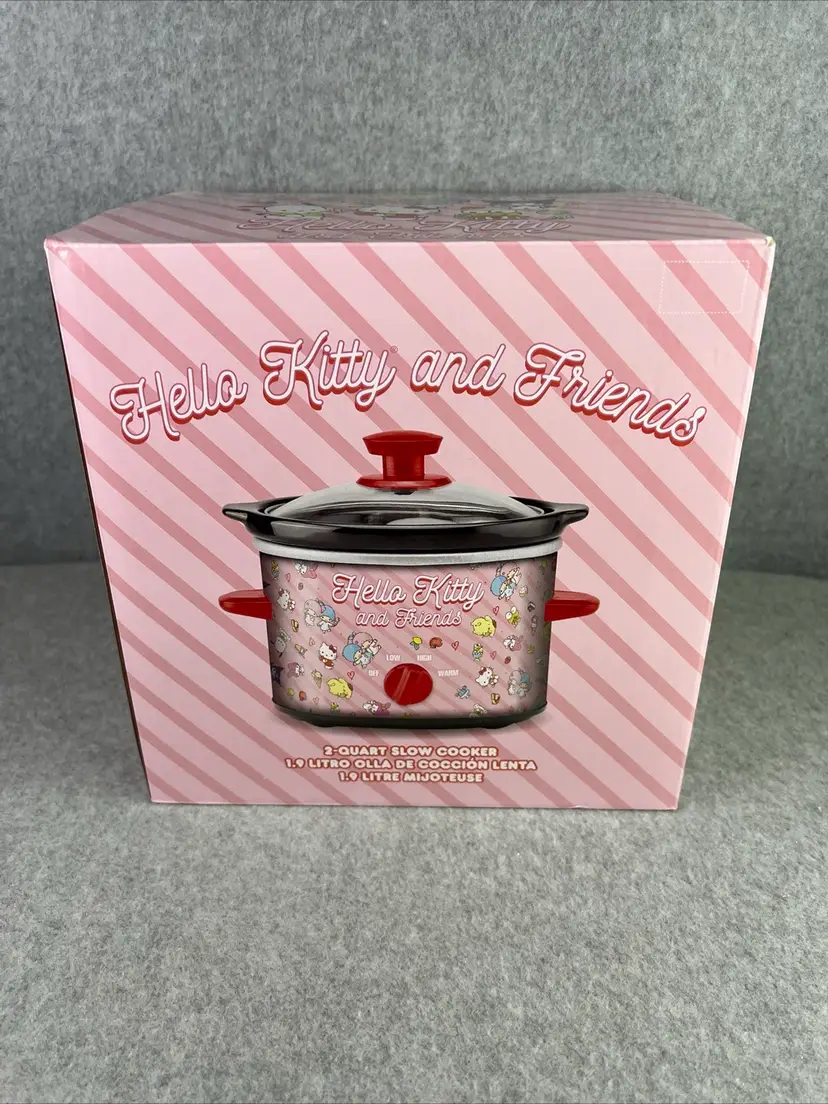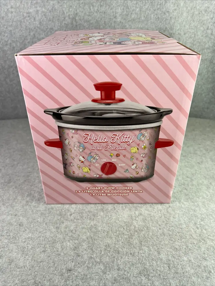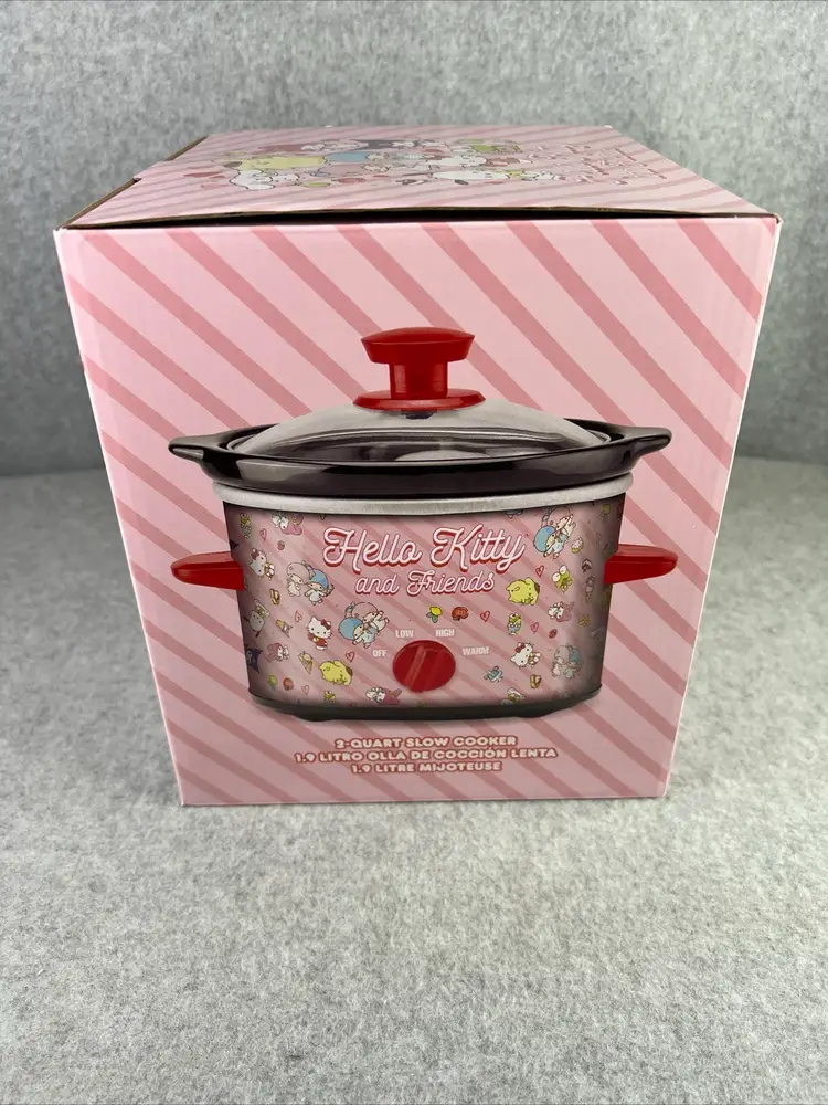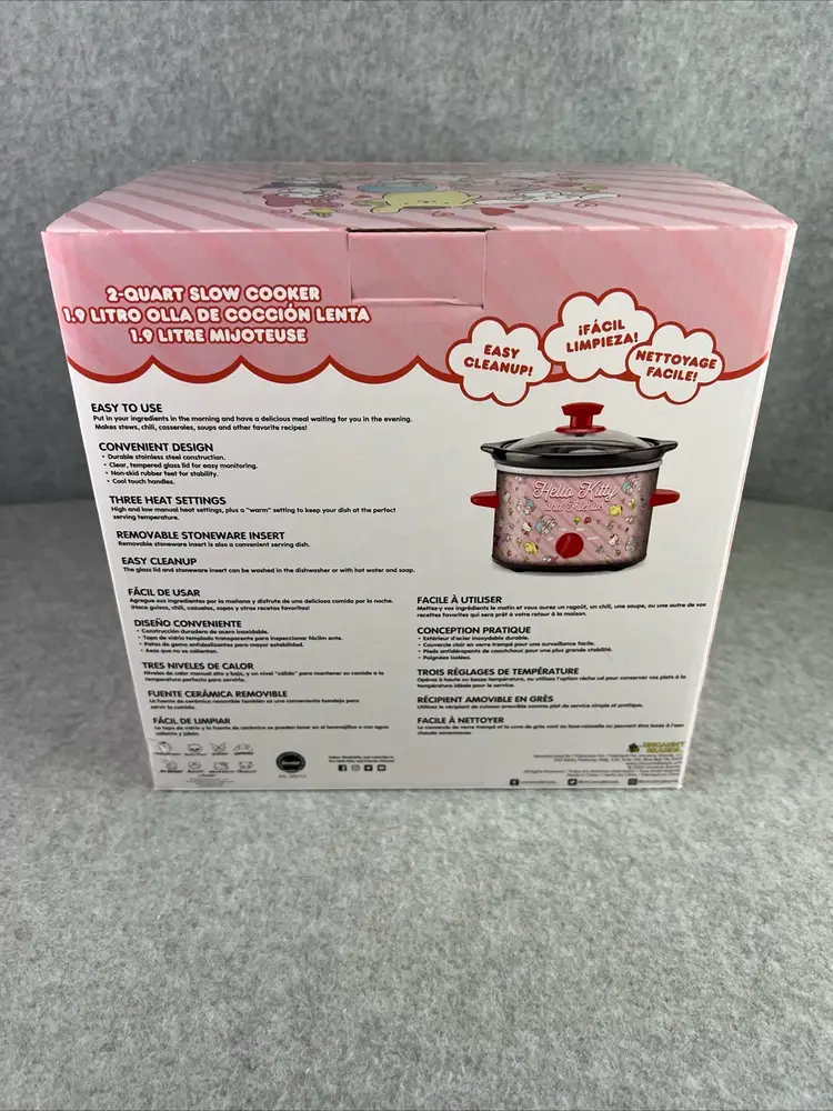 The Hello Kitty and Friends Crock Pot is a 2-quart slow cooker designed with a cute Hello Kitty theme, making it a fun and attractive addition to any kitchen. This electric slow cooker features three settings/programs for versatile cooking options and comes with essential components such as a stoneware pot, lid, and base. Perfect for preparing small meals or dips, this colorful multicolor slow cooker is both functional and adorable, ideal for fans of Hello Kitty looking to add a touch of charm to their cooking routine.