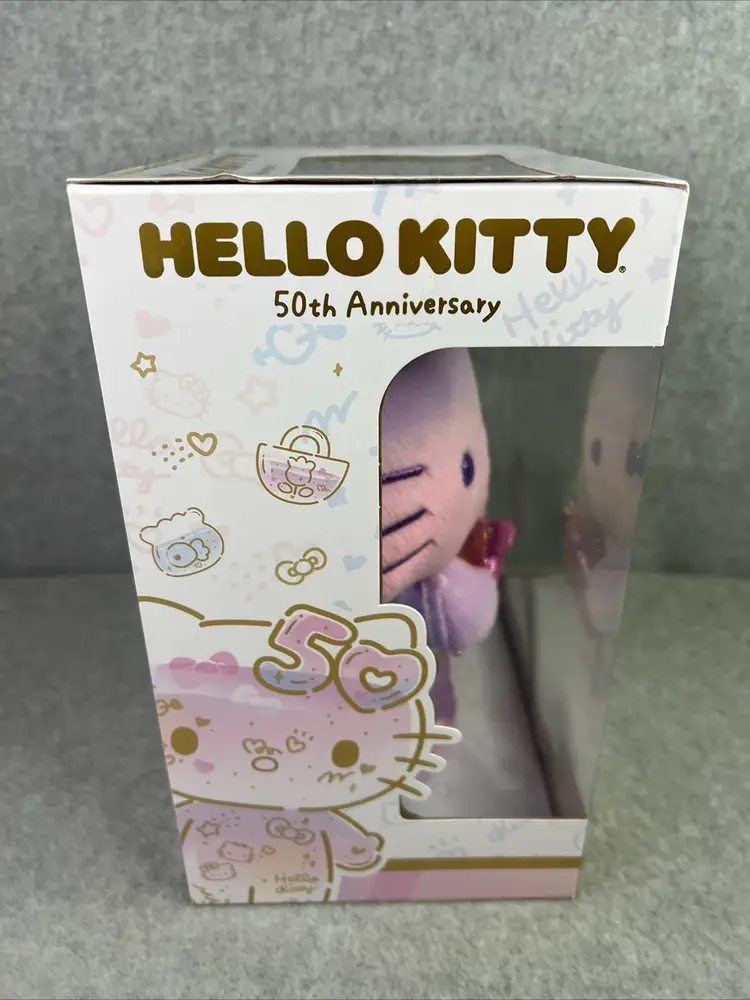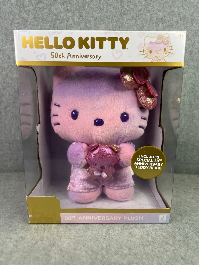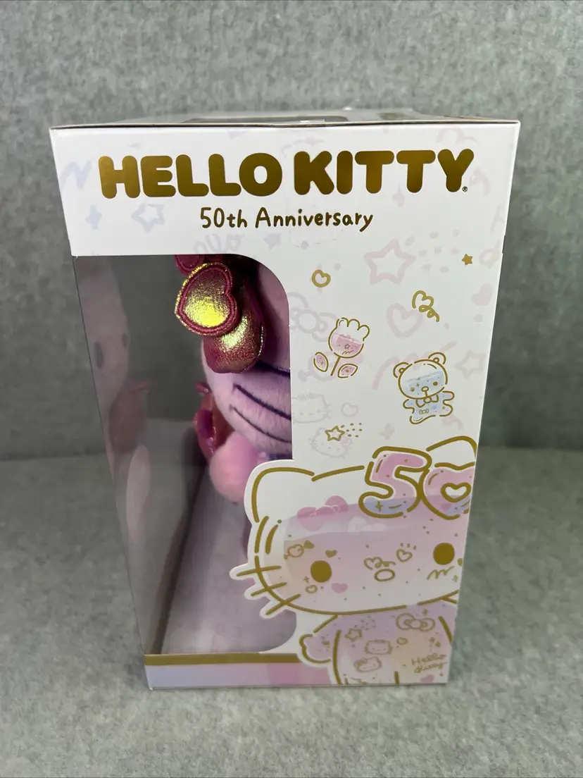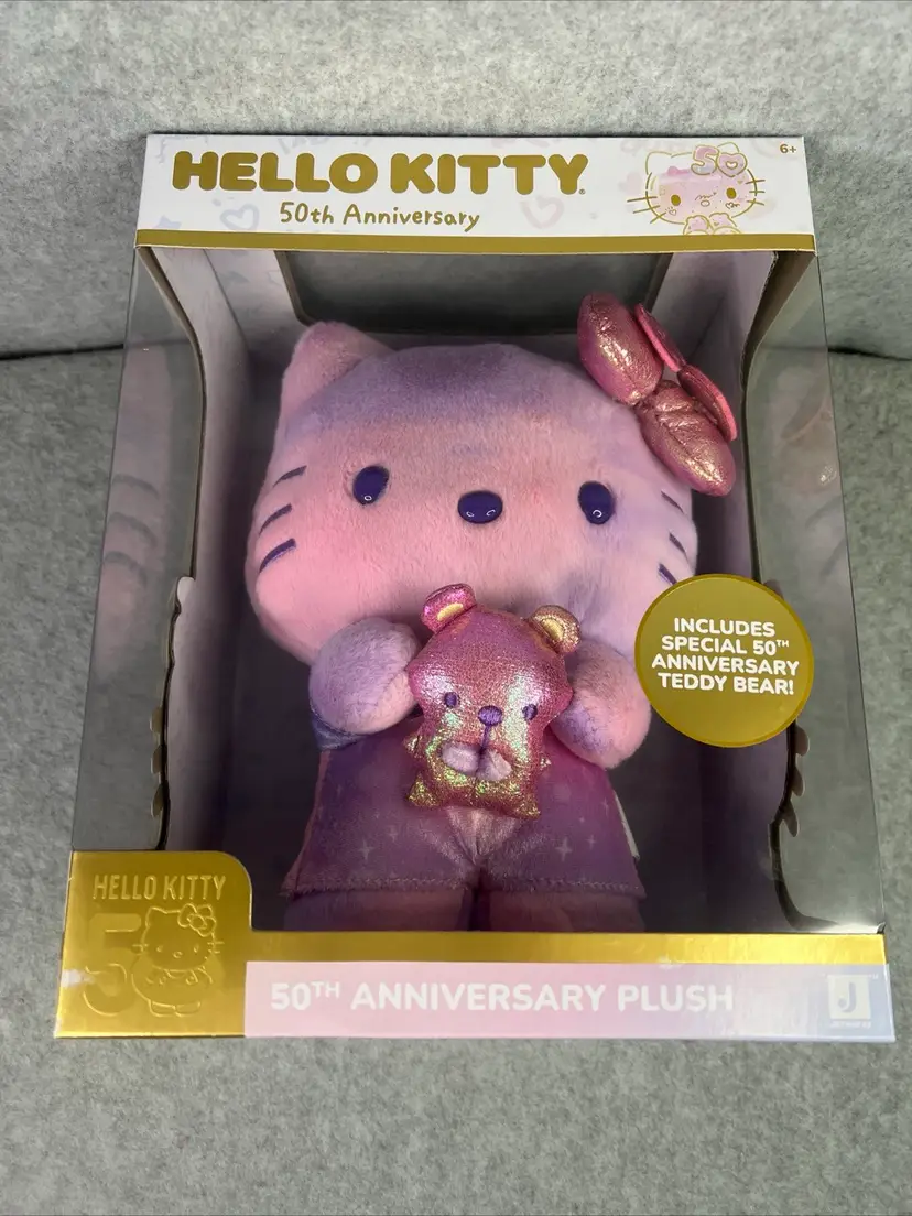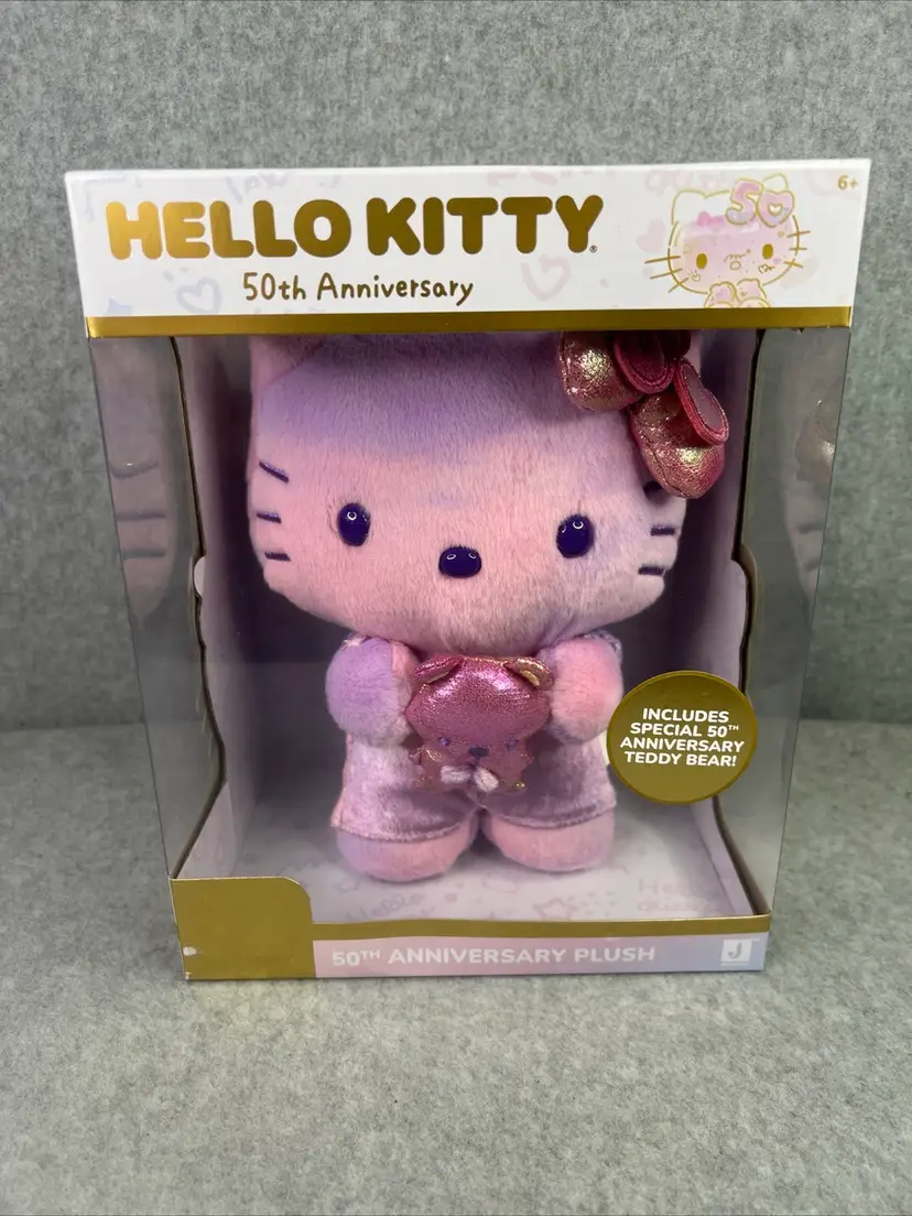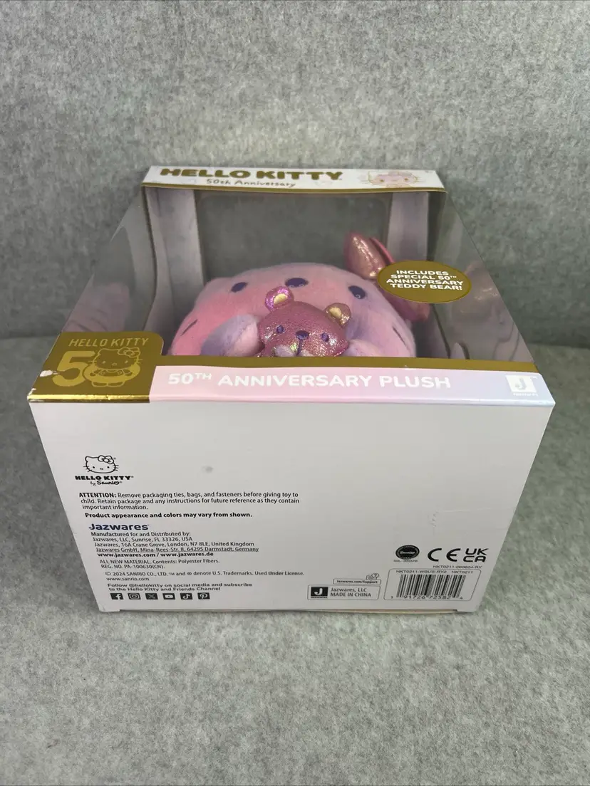 Celebrate the 50th anniversary of Hello Kitty with this exclusive plush from Jazwares. This adorable plush is perfect for any fan of the beloved character and features a special design commemorating the milestone anniversary. Made from high-quality materials, this plush is soft and cuddly, making it the perfect addition to any collection.