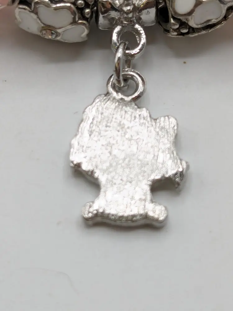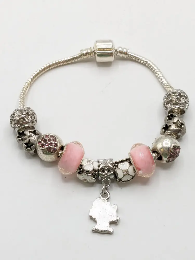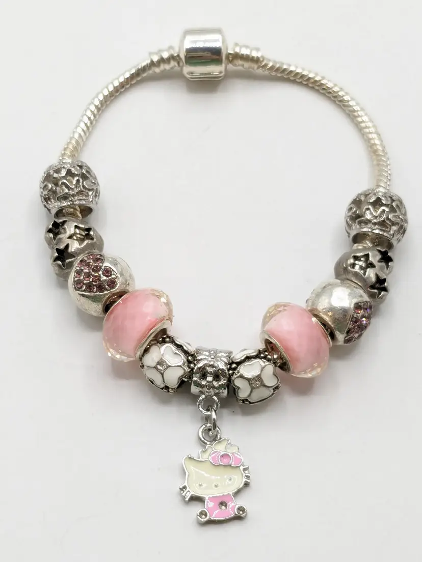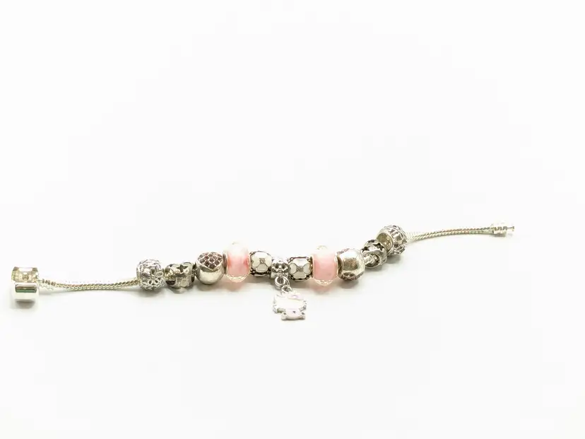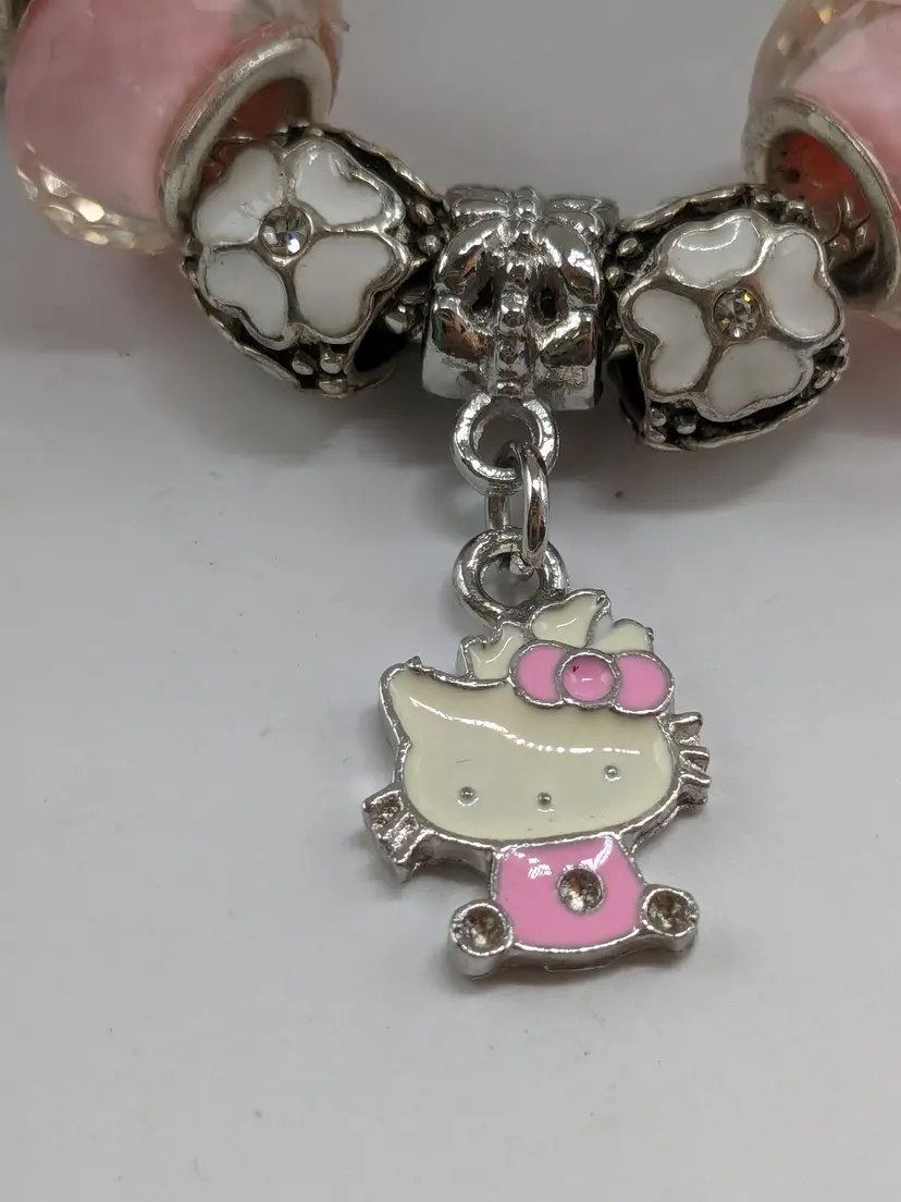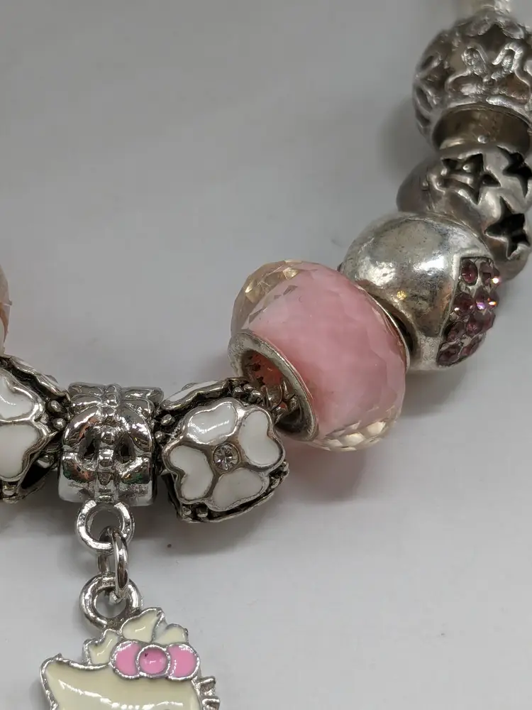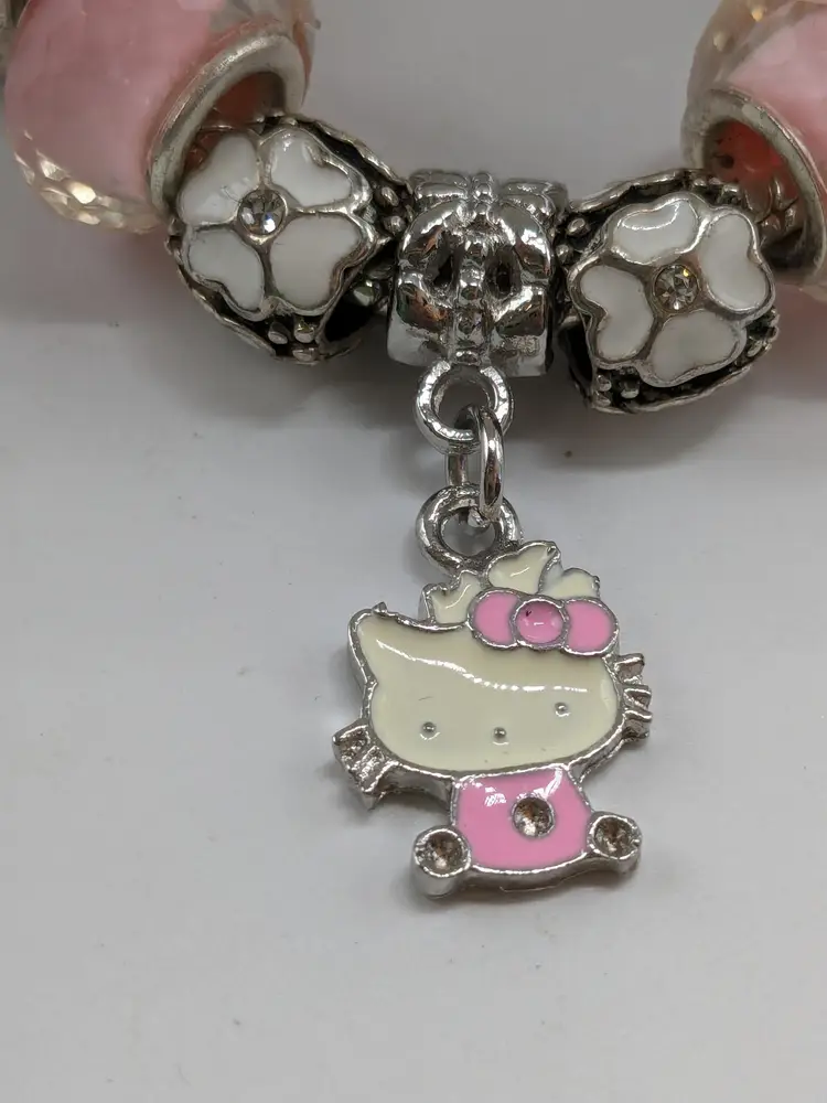 Good condition. Total of 11 charms. Colors are pink, white and silver. Measures 7".