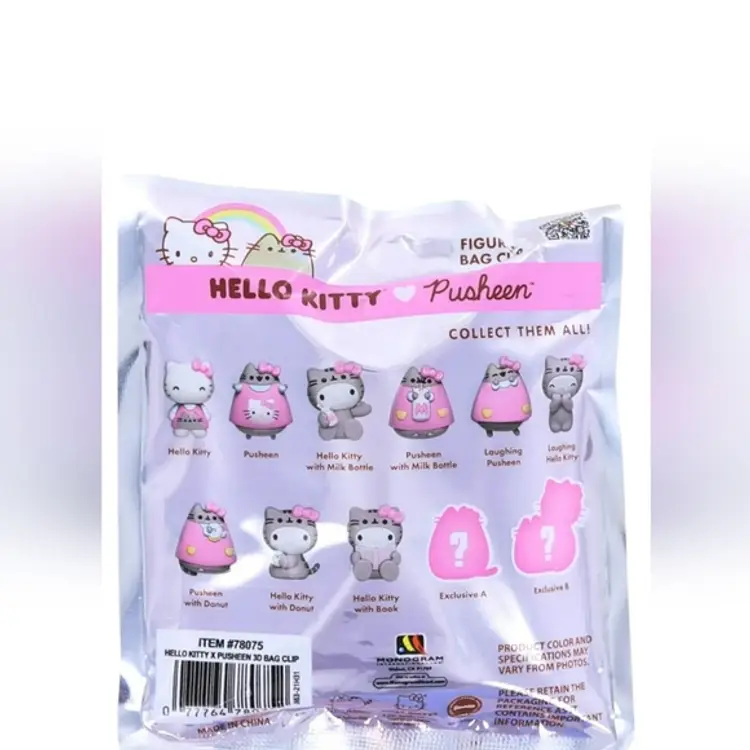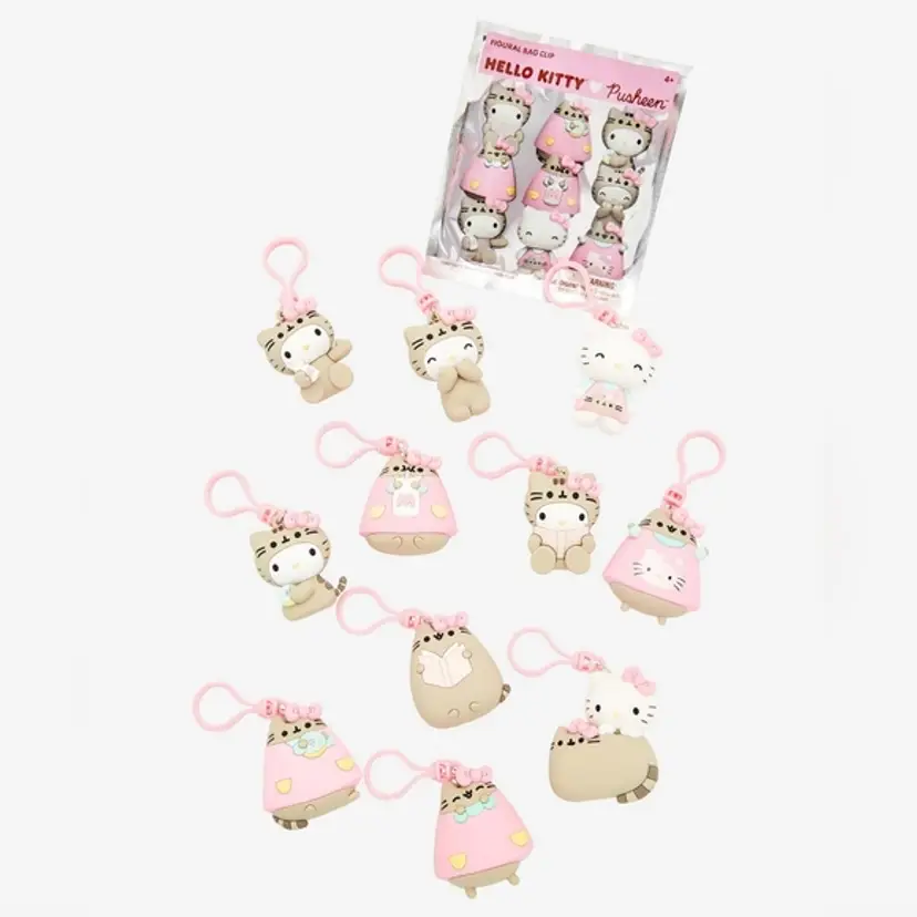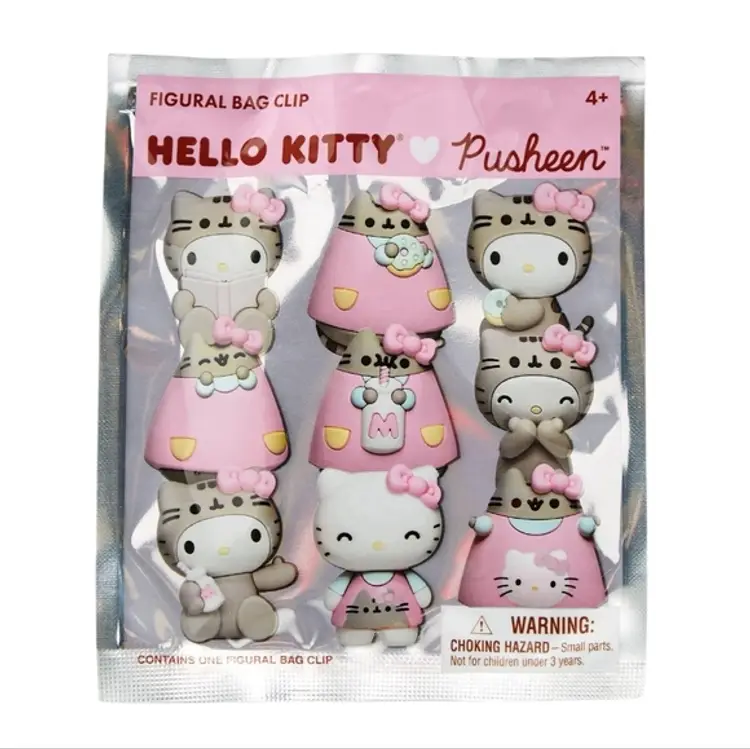 This collaboration features unique Hello Kitty and Pusheen bag clips featuring kawaii characters in various poses. Receive ONE blind bag containing ONE character bag clip. No guarantee of which character you will receive. Each 3D figure comes with a plastic claw-type accessory clip for attaching to a backpack, belt bag, purse, lunch bag, lanyard, keys, etc.