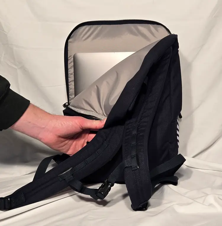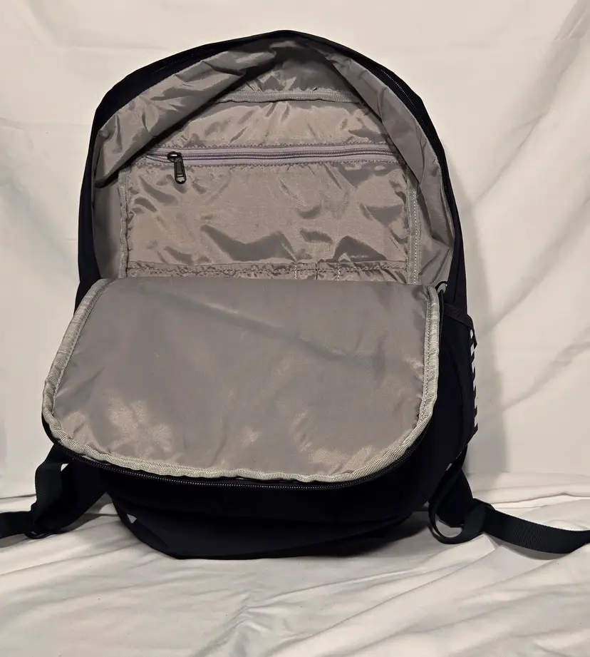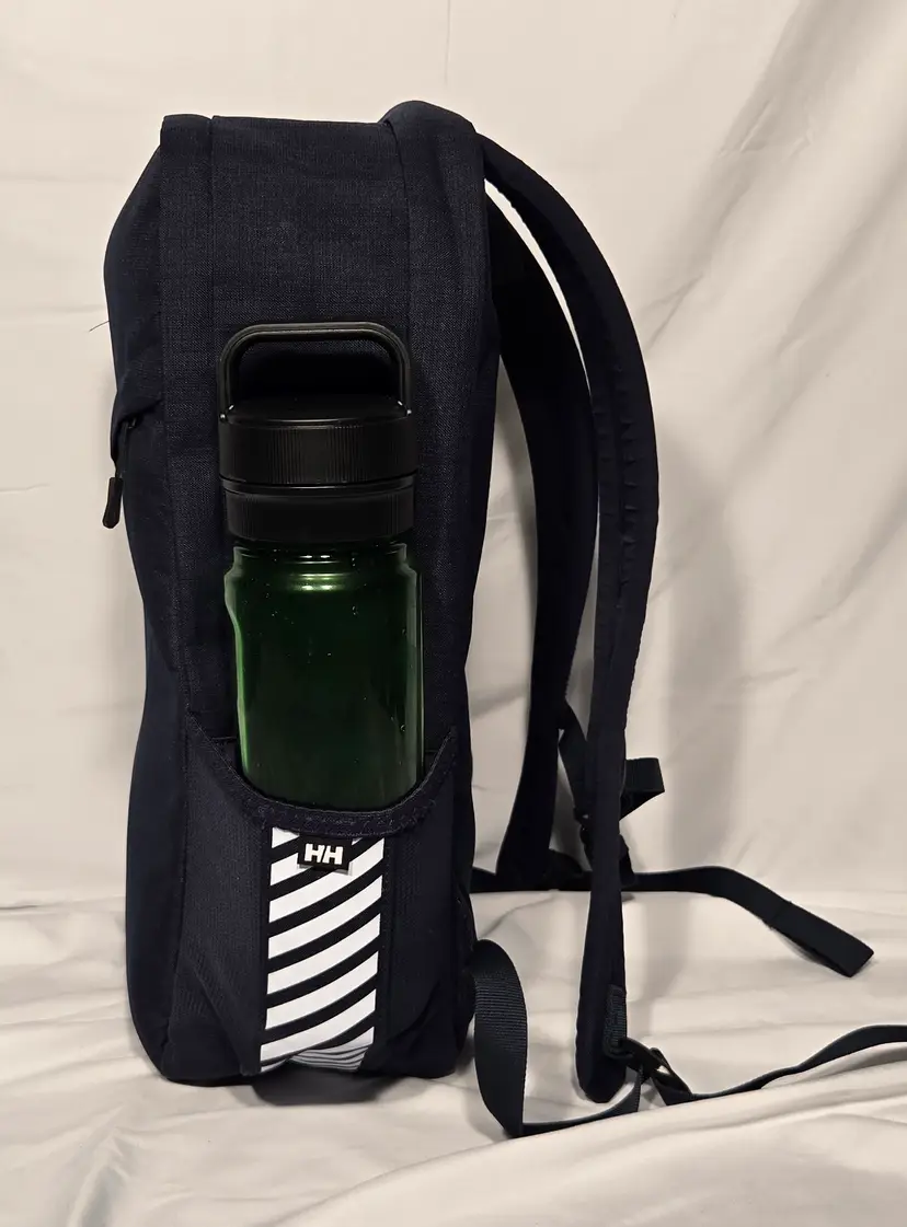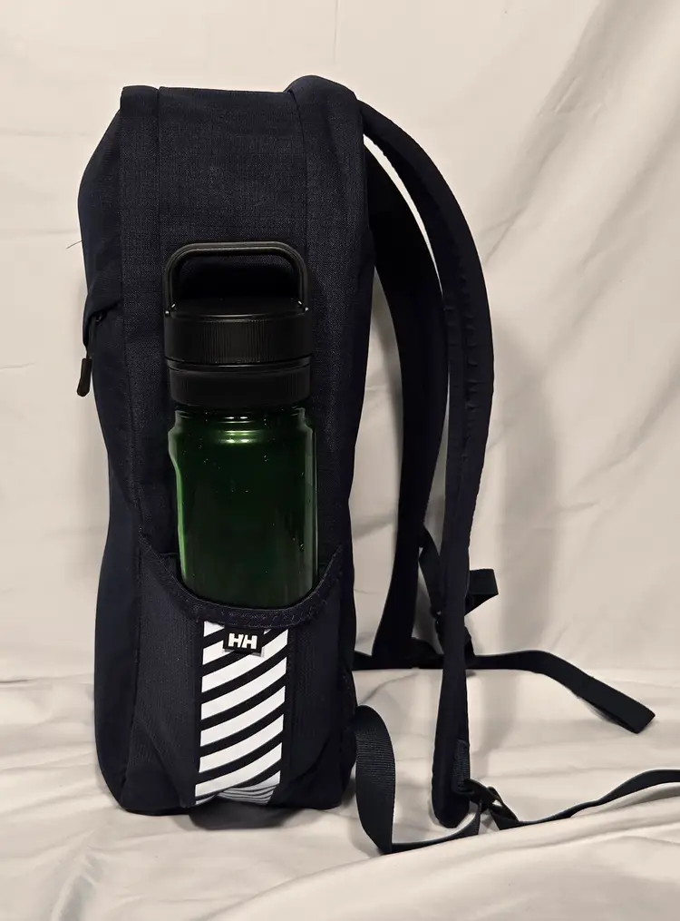 Daypack that I personally have been using for a few years. Was from the H/H store in Annapolis, MD, but no longer available. Don't know the volume, but it measures roughly 12"x18"x6". Perfect for single day or night trips. Looks brand new- no obvious marks or scratches. Simple design for those not needing a lot of "noise" in their bag.