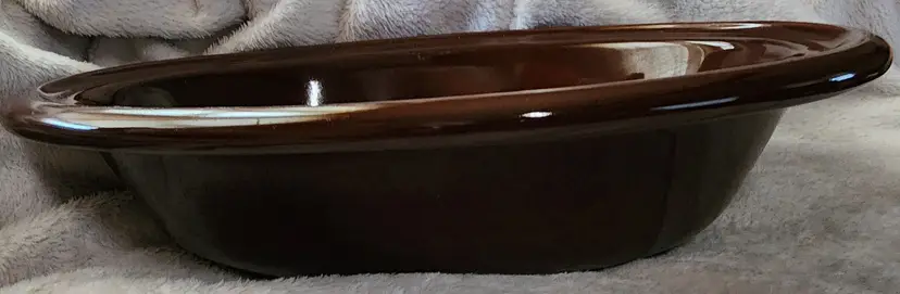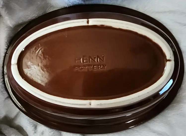 Henn Brown Stoneware Pottery 12" x 9" x 3" Oval, 1-1/2 Quart Casserole Baking Dish Insert Bottom Stamped Excellent Condition.