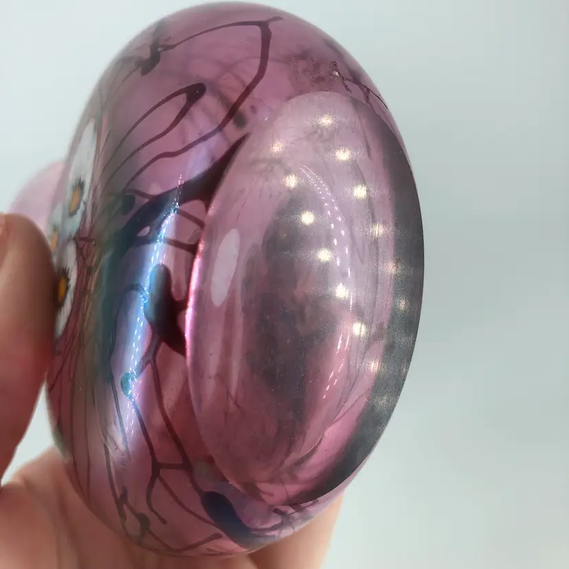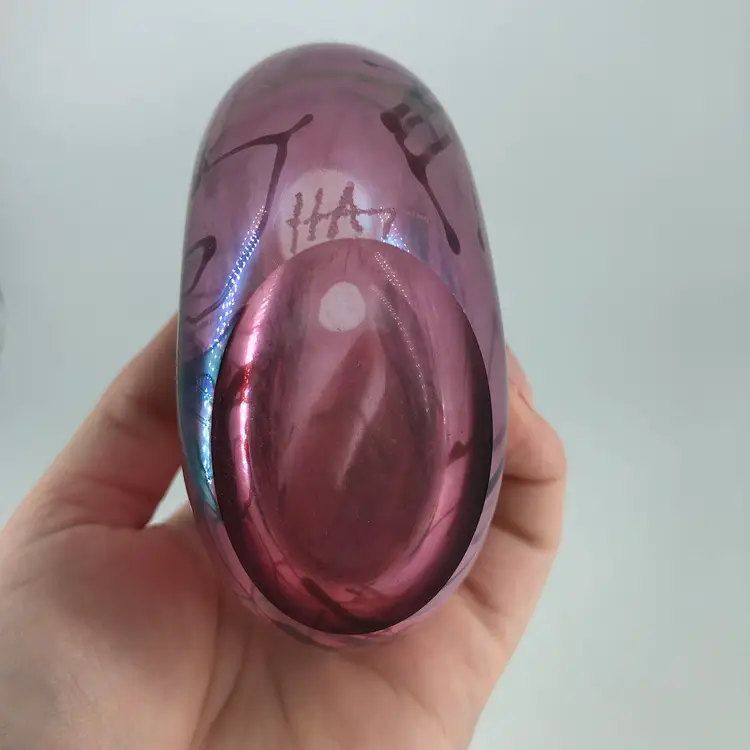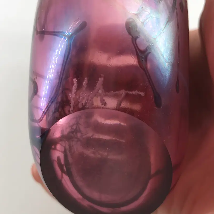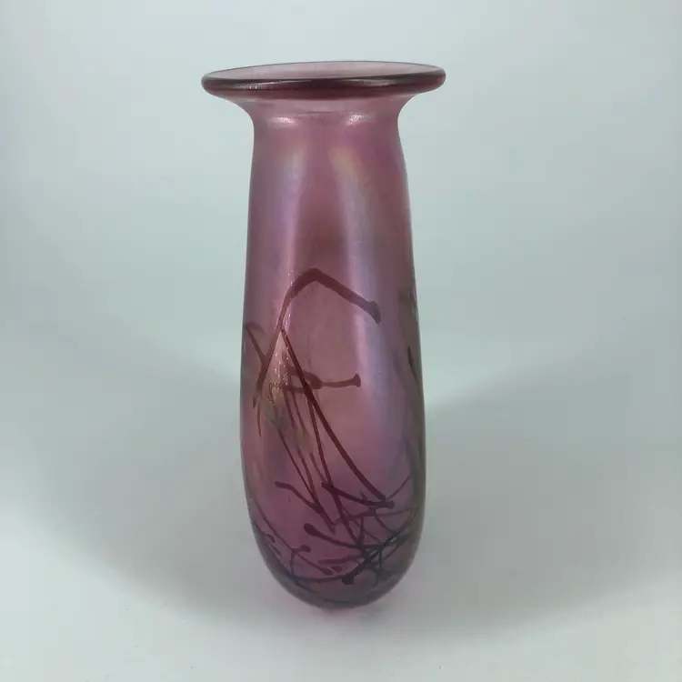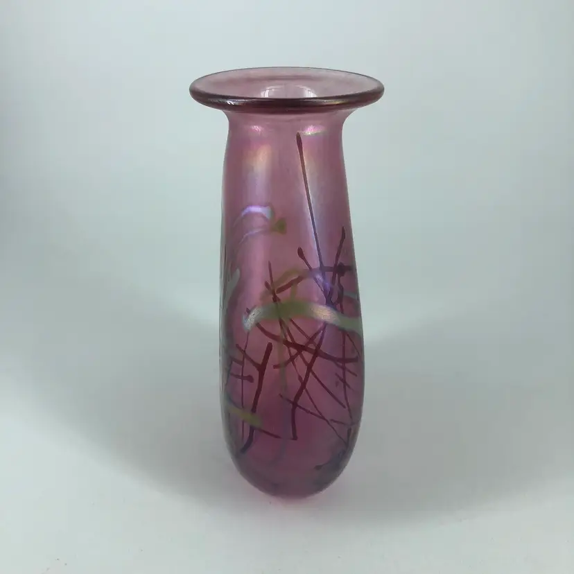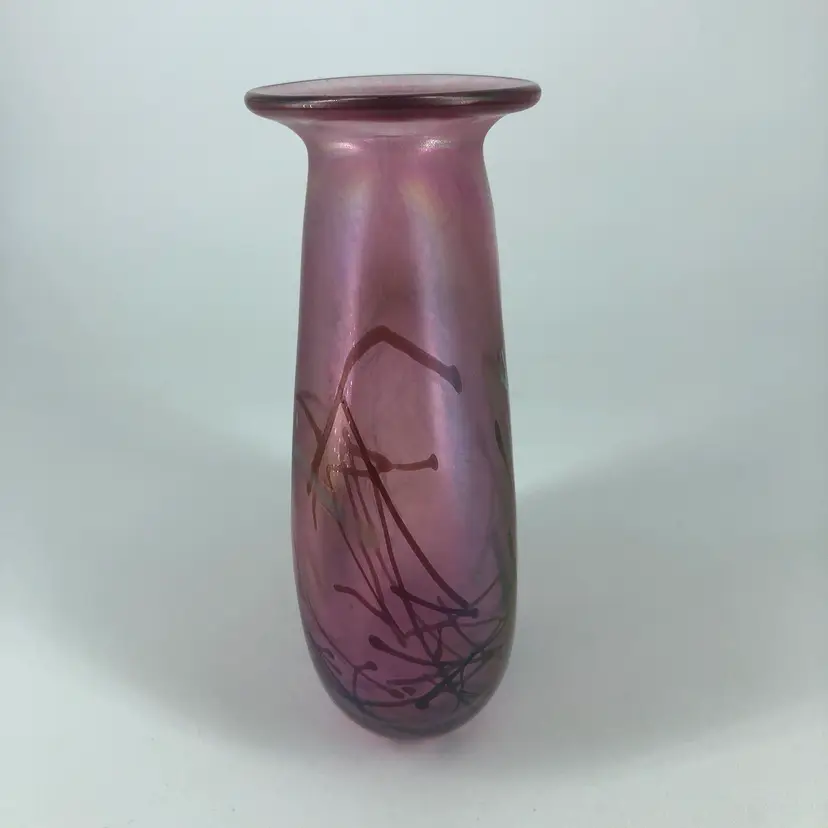 Herb A Thomas HAT Hand-Blown Art Glass Iridescent Daisy Flowers Pink Vase