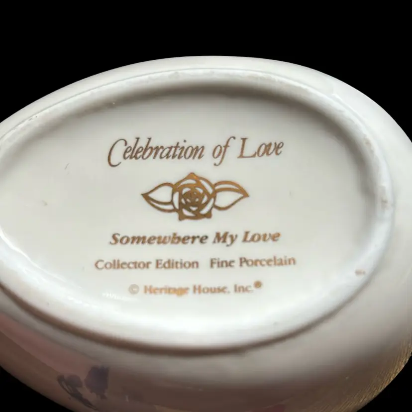 Part of the Celebration of Love collection. Plays “Somewhere My Love”. Floral design.