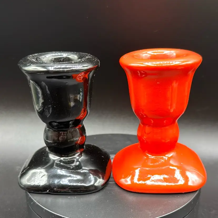 Hermitage Pottery Black And Orange Halloween Candle Sticks 3” No Noted Flaws