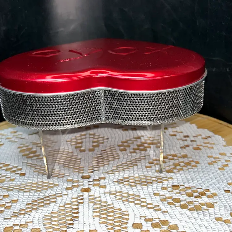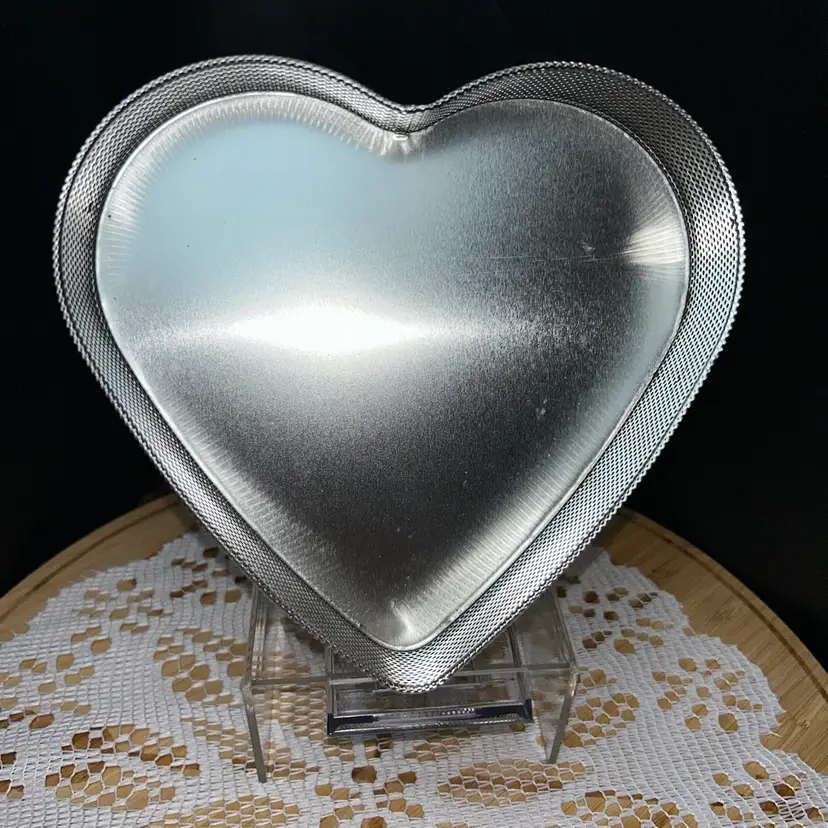 7” across at the widest, 7” long, 1.75” tall. Very good condition. A scratch on front, a few tiny places of discoloration around the outside edge. Dated 2010.