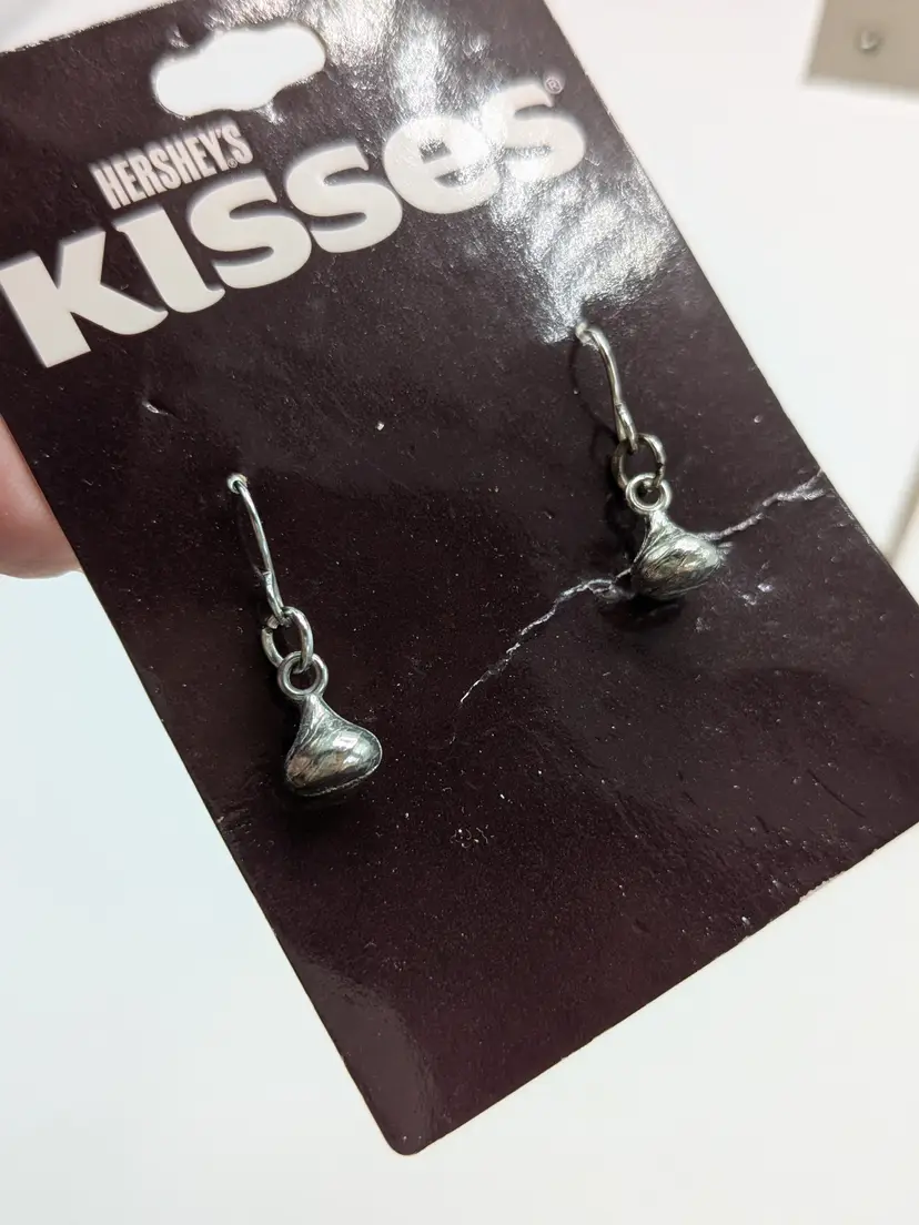 Earrings are in good condition. The card is creased and a bit worn. Silver tone is bright and shiny with no color loss. New old stock. Measures 3/4" in length from top of hook and 1/4" wide. EN3
