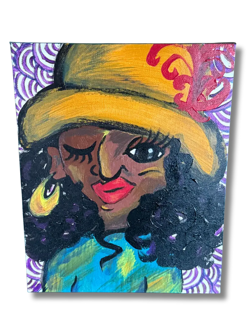 Meet Auntie Tasha – a vibrant and soulful piece from the whimsical “Hey Auntie!” collection. This 8x10" original acrylic painting celebrates the unforgettable aunties who fill our lives with laughter, love, and wisdom. Whether you're gifting a special auntie or honoring your own, this artwork brings warmth and character to any space.