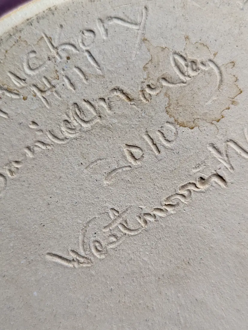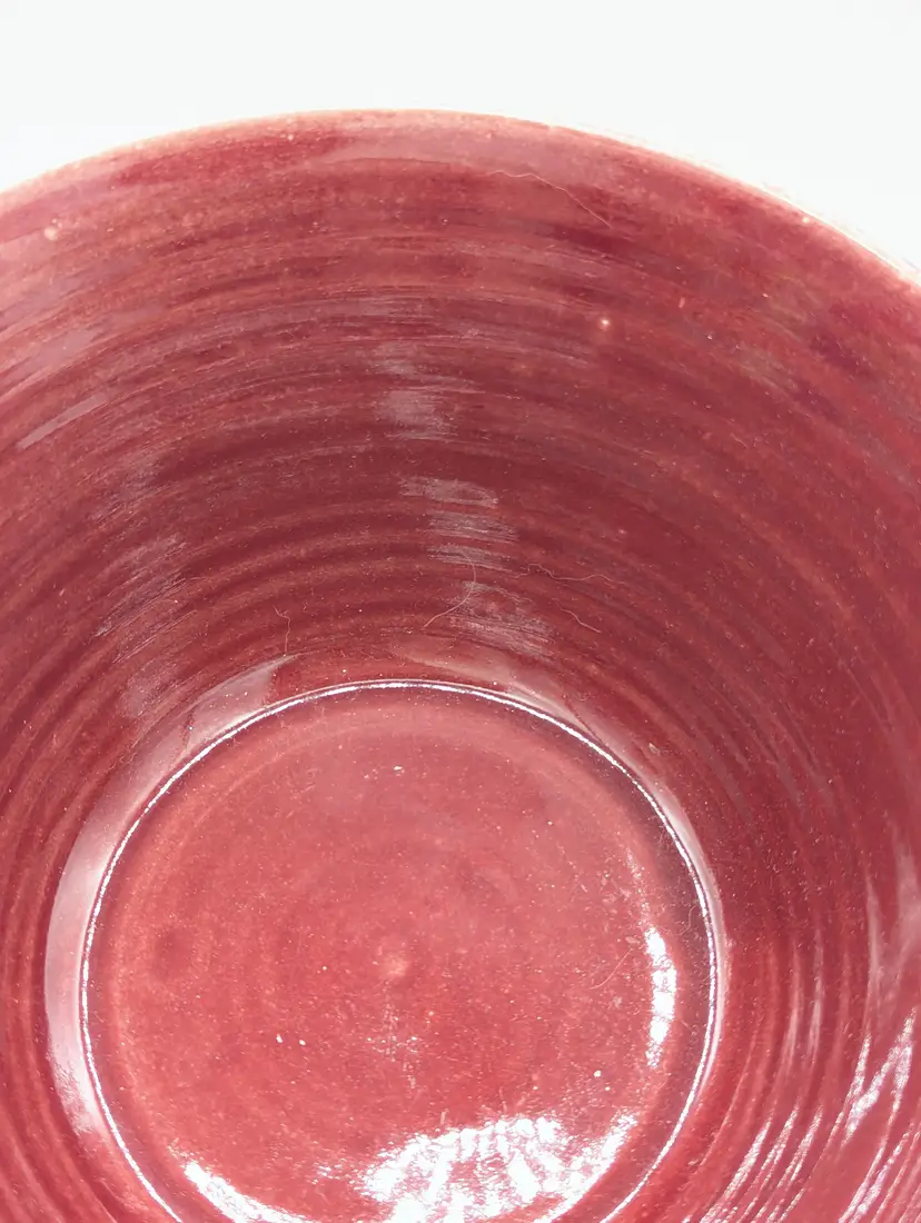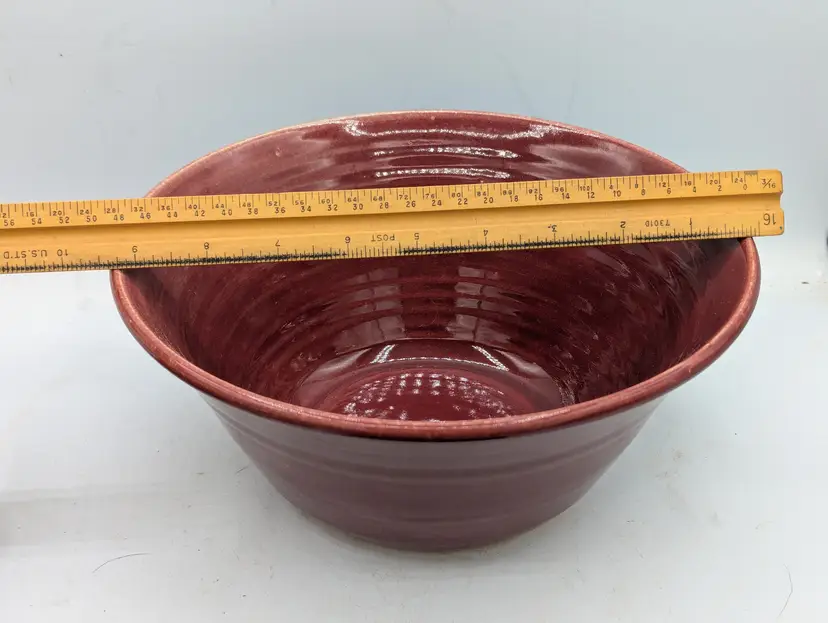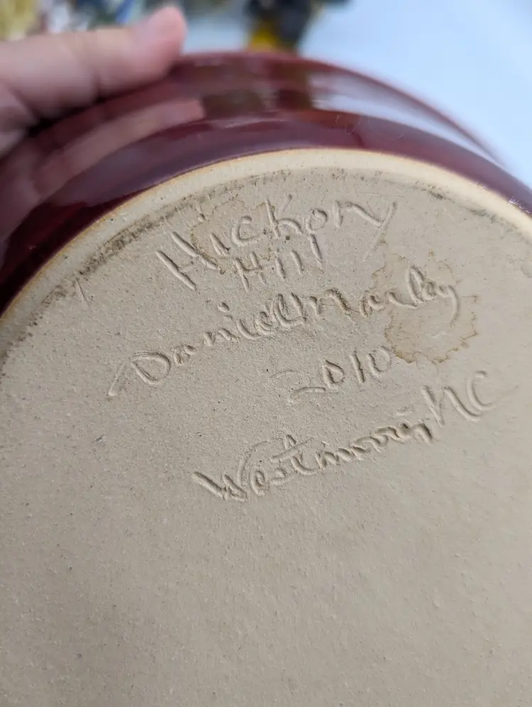 Brand: Hickory Hill Pottery (Westmoore / Seagrove, NC) Artist: Daniel Marley Date: 2010 Material: Hand-thrown Stoneware Color: Deep Oxblood / Maroon Glaze Item Details This is a beautiful, substantial hand-thrown pottery bowl from the renowned Hickory Hill Pottery studio in the Westmoore/Seagrove area of North Carolina. This piece features a rich, glossy oxblood red glaze with wonderful depth and classic concentric throwing rings that highlight its handmade origin. The bottom is clearly hand-incised: "Hickory Hill Daniel Marley 2010 Westmoore NC."Good Condition No chips, cracks, or "flea bites" along the rim. The glaze remains vibrant with a high-shine finish. (Please see all photos for close-up details).