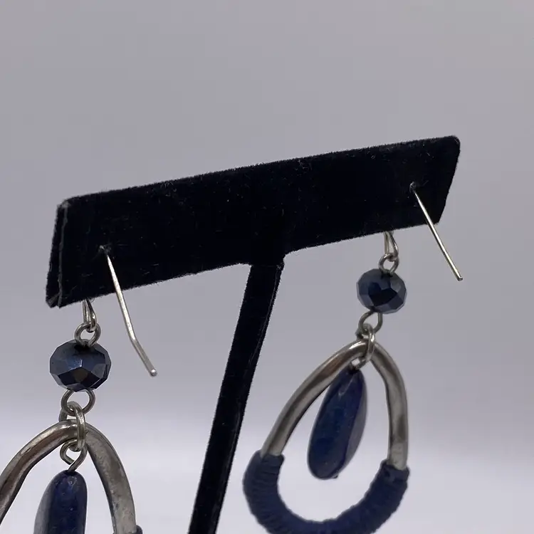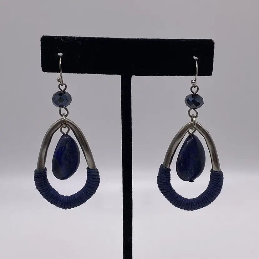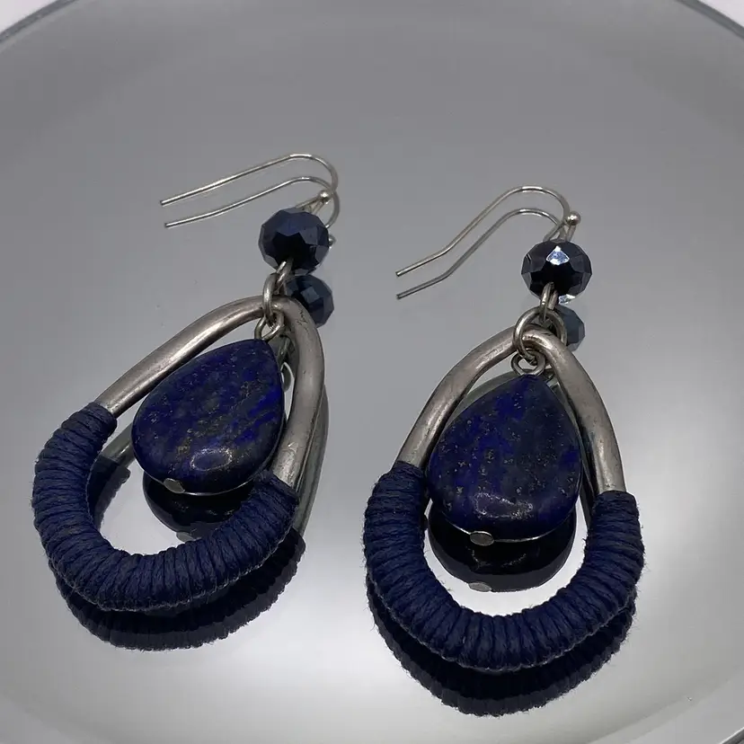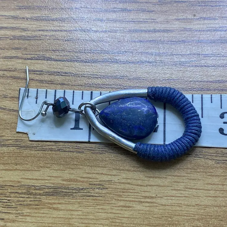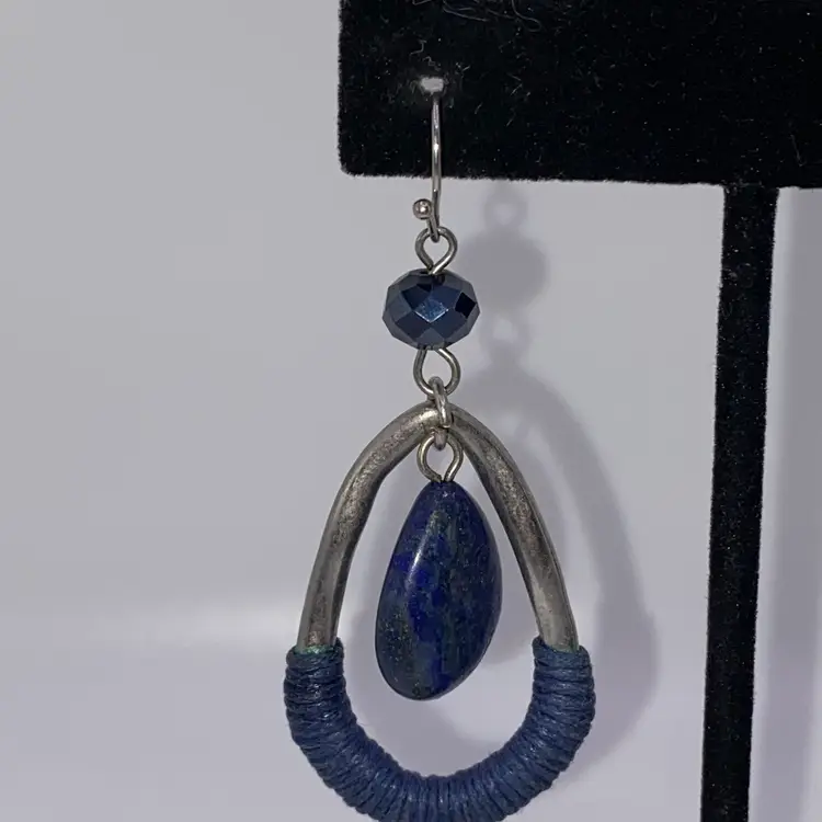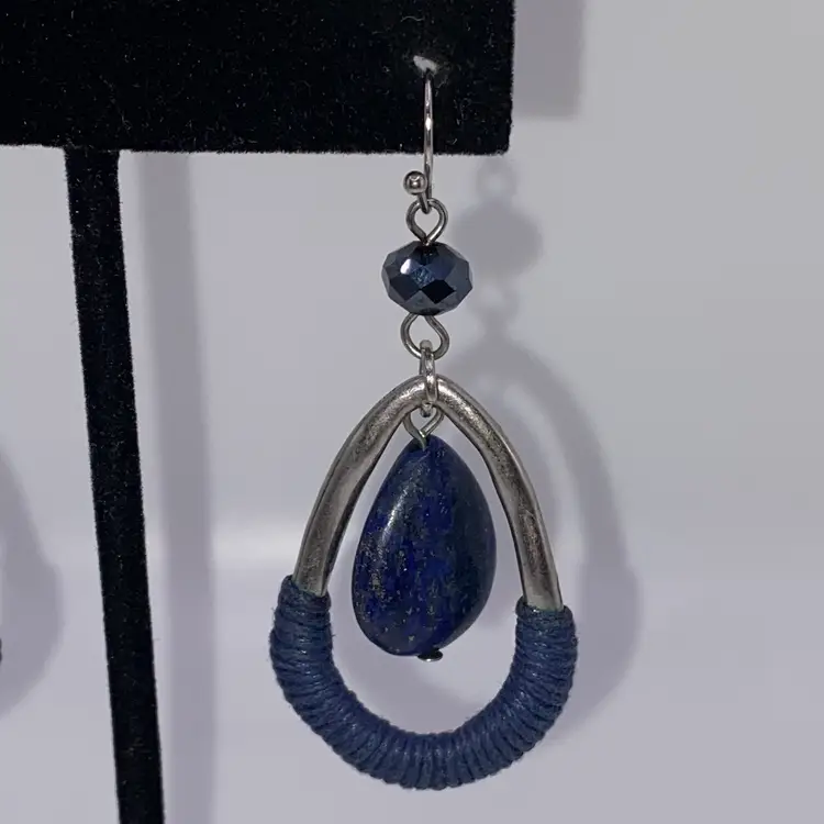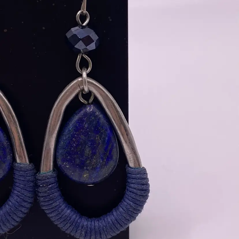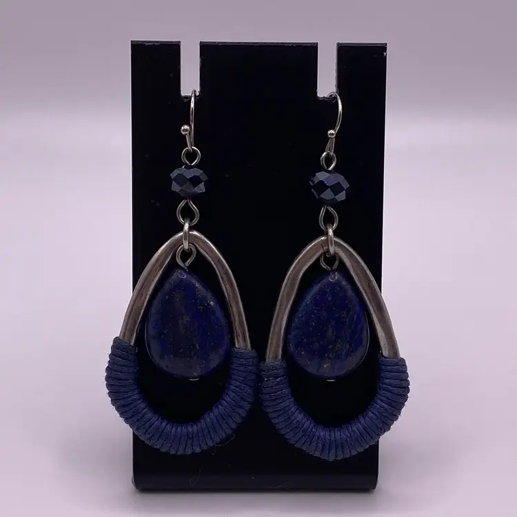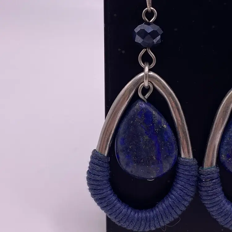 These elegant teardrop-shaped earrings are a must-have for any jewelry collection. The beautiful blue color of the lapis lazuli stone is sure to catch the eye, while the silver tone metal adds a touch of sophistication. The hook closure makes them easy to wear, and the 2.5" length is perfect for any occasion, whether it's casual or formal.