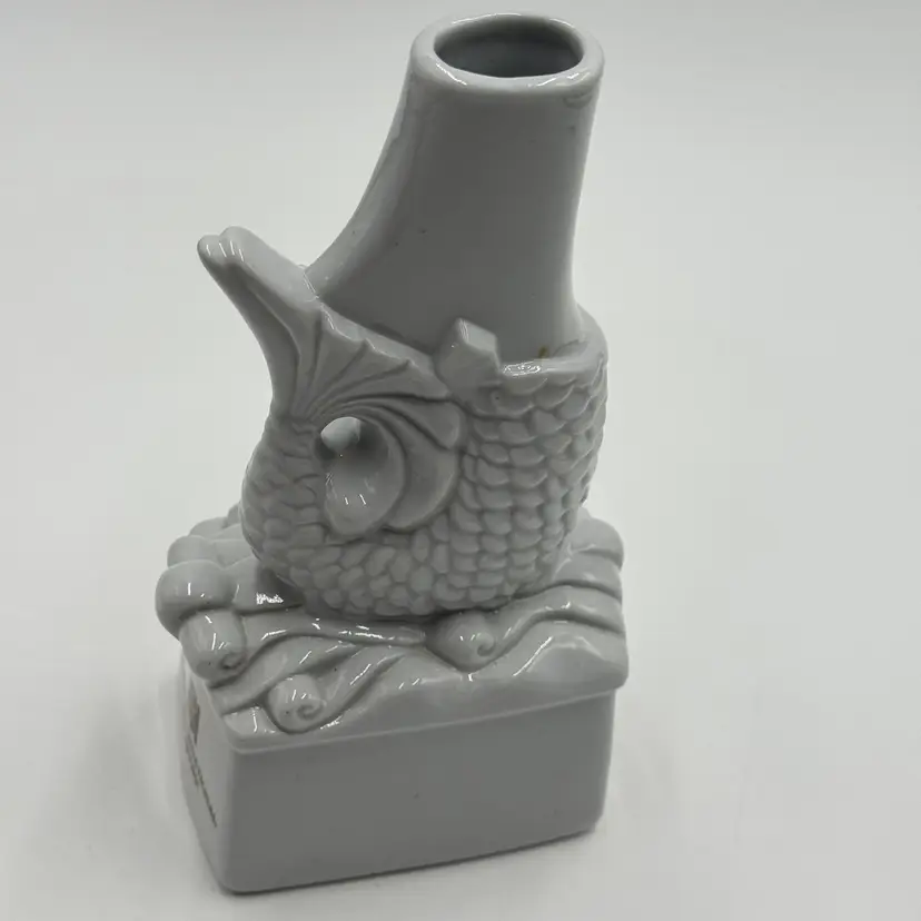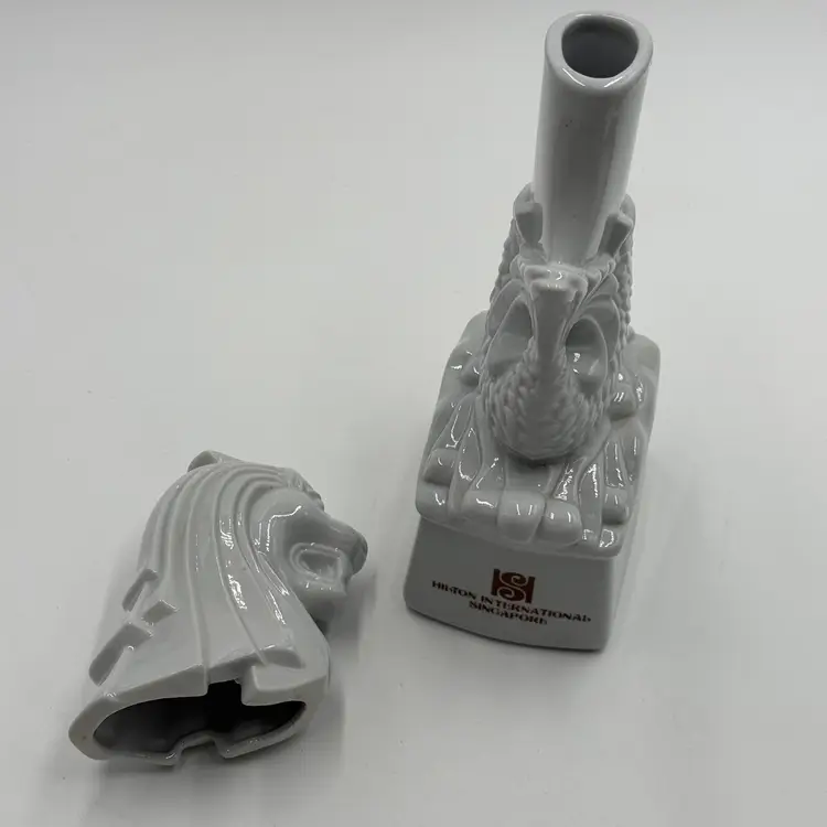 In good condition. Does not have any chips or cracks. Decanter is empty. Measures 9 inches tall, 4 inches long and 2 1/2 inches wide.