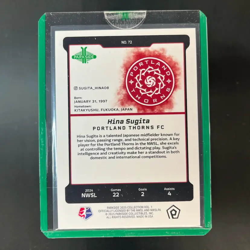Hina Sugita 2025 Parkside Vol 1 NWSL Onyx /2 Black Soccer Card