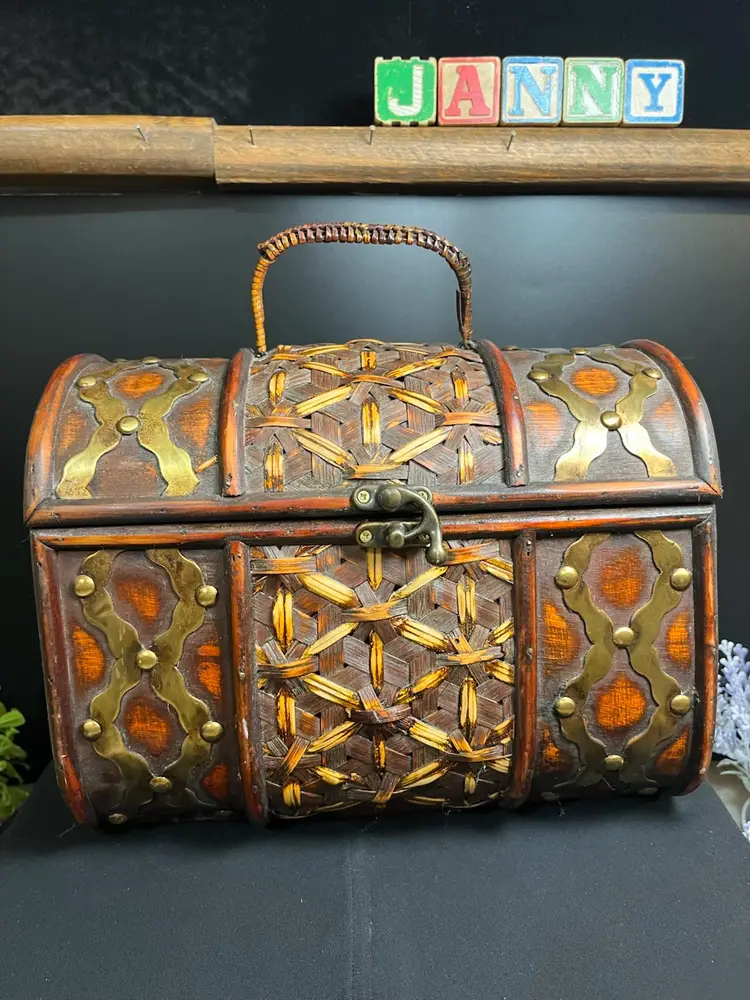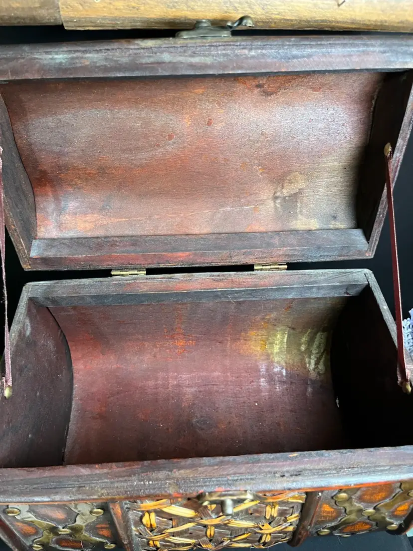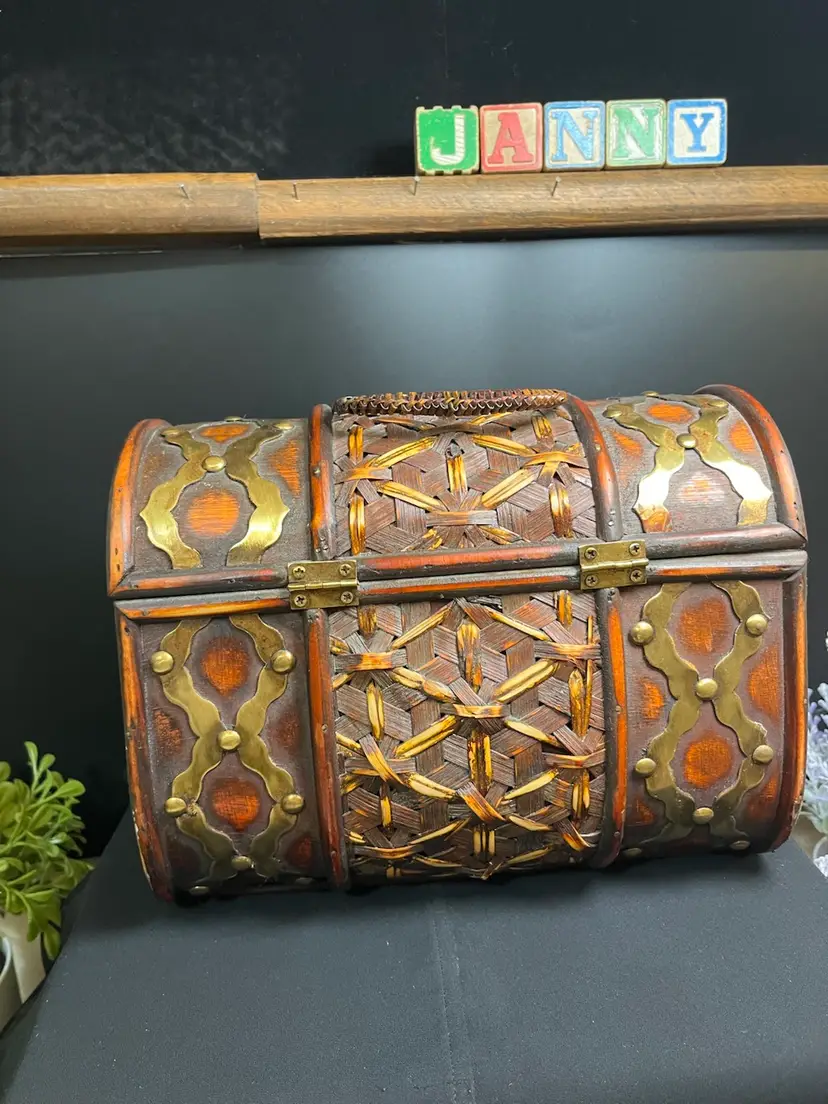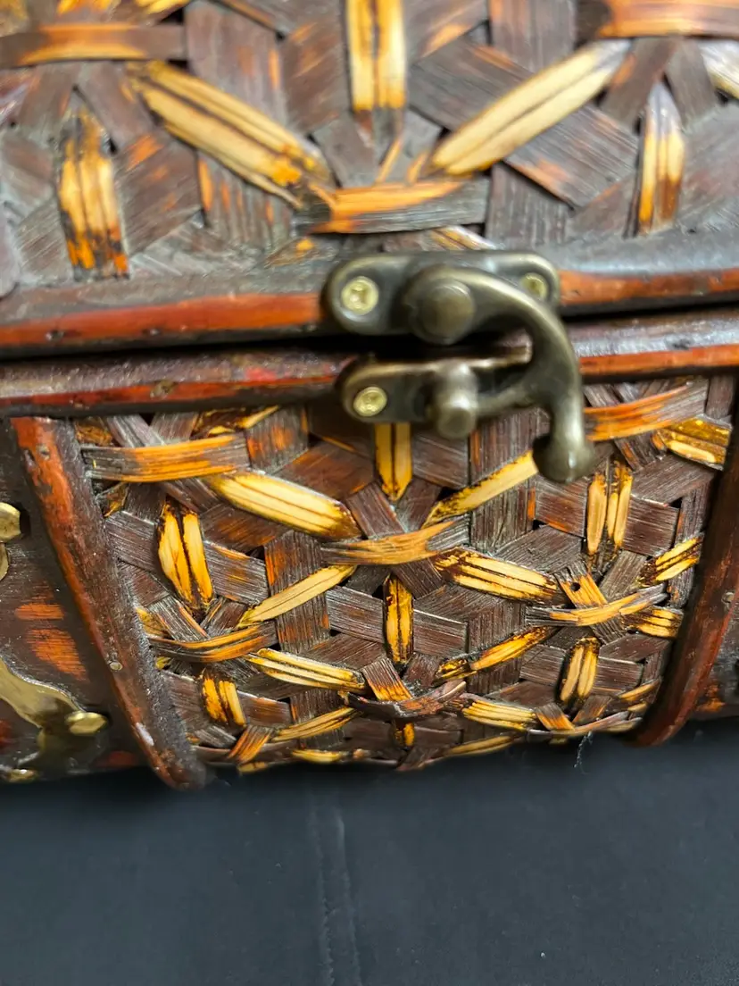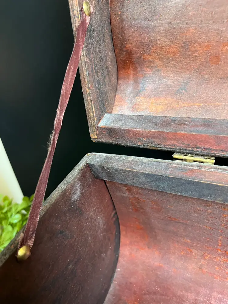 Use in your fall vignettes, storage, prop for themed parties etc. Hinges are intact, Ribbon is intact, entire box is intact, latch works perfectly. No call outs on this. It measures approx 8"H, 6"D, 10"L, 1 1/2 Lb