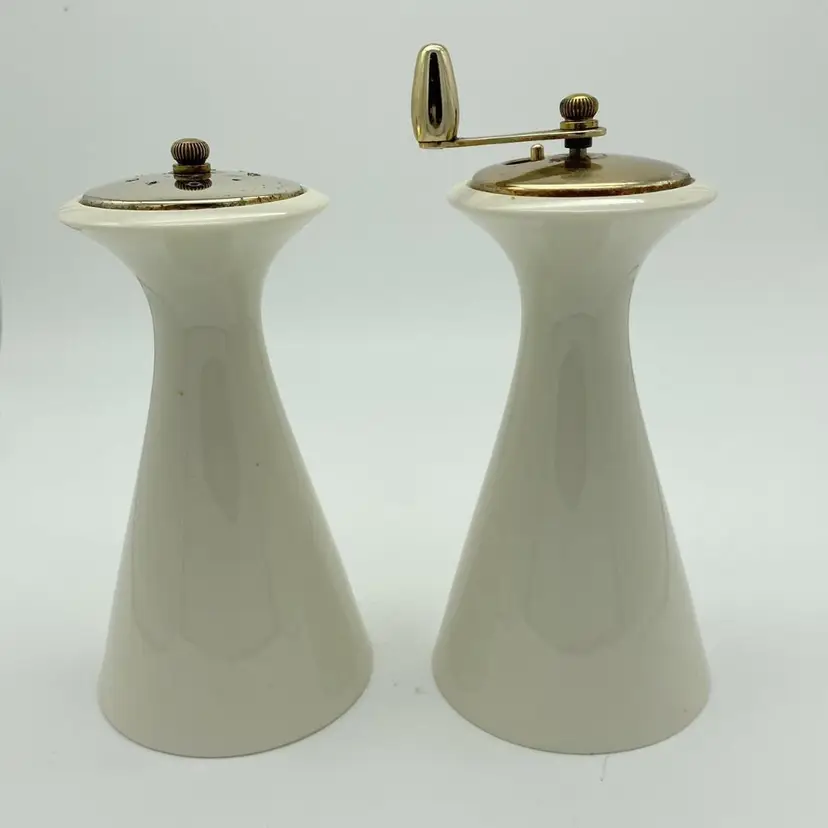 This set is so cool you just can't believe they made them. Bodies of these are clean, the top of the salt shaker is a little rustic from age. I'm guessing early 1960s from the graphics. I've seen this shape before (with the Phillies Cigar totem) but never with these cool cigar graphics! Get your martinis out, gang, it's time for a cocktail party!