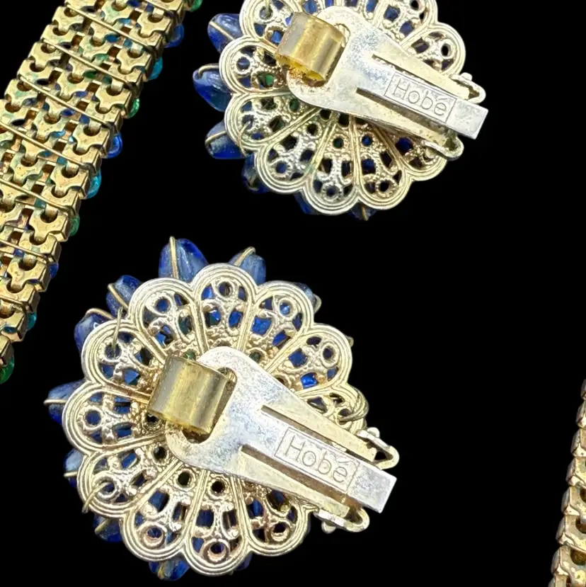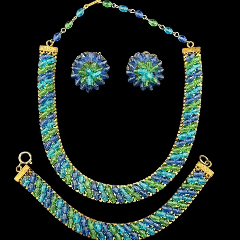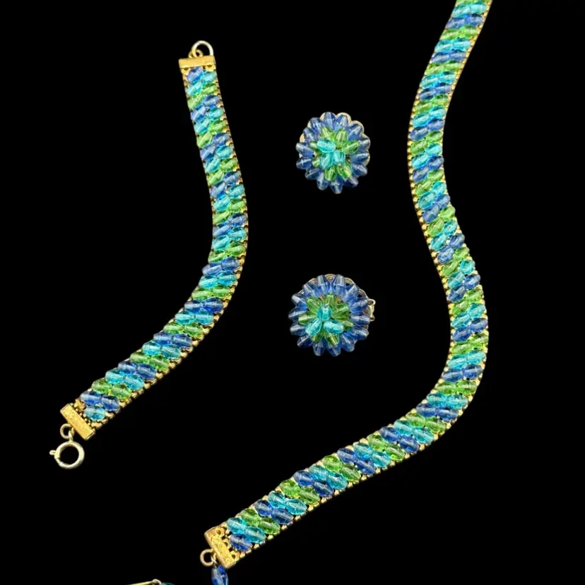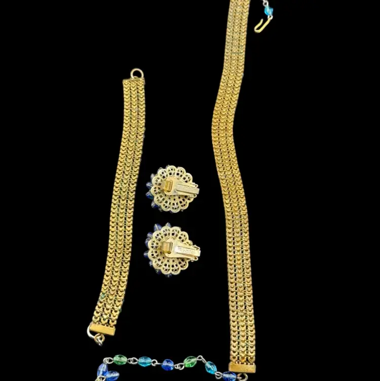 16" necklace opened, adjustable, Shepards hook 7 1/4" bracelet, spring clasp 1" earrings, clip-on